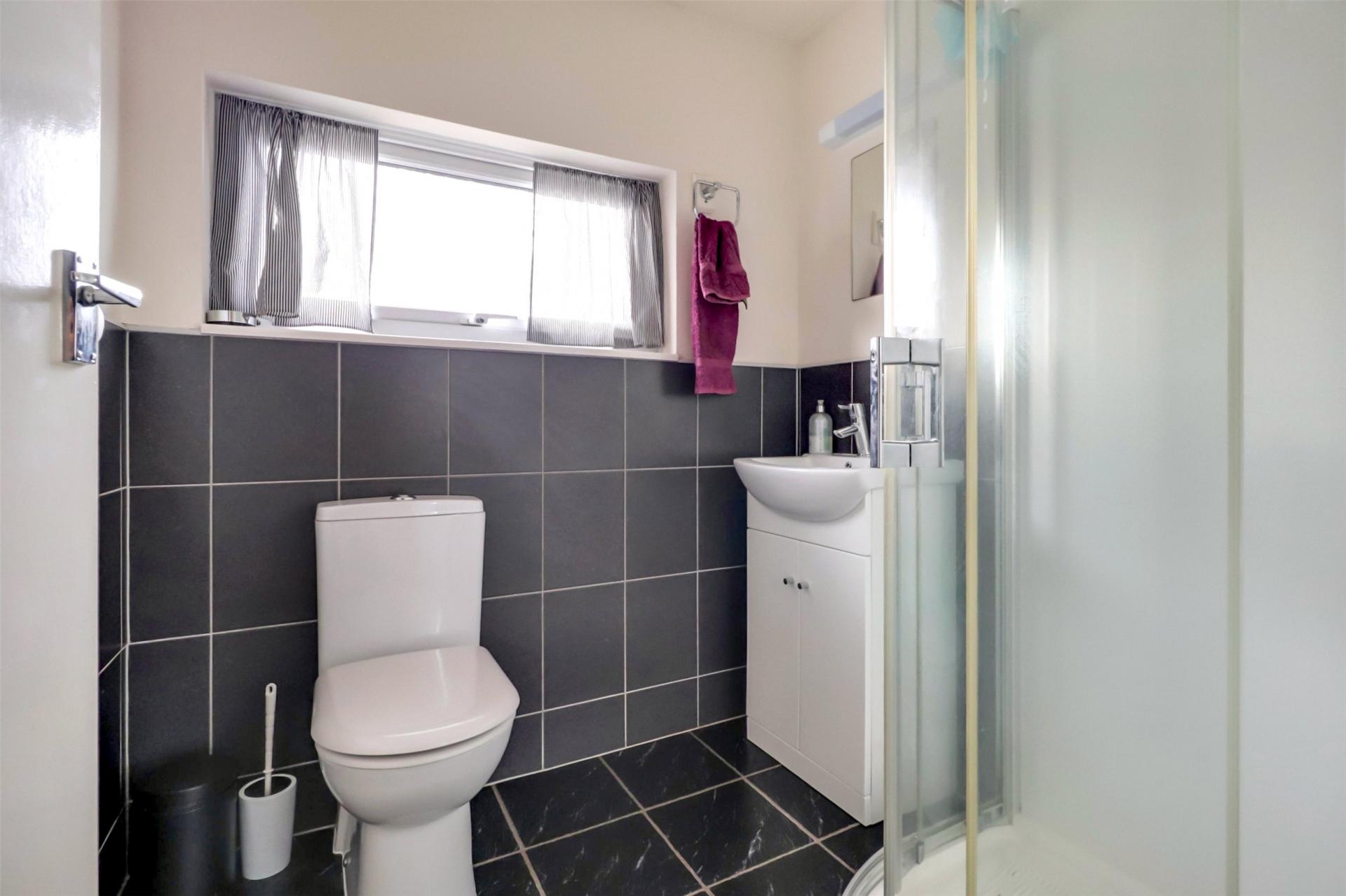 The modern shower room is fitted with a modern suite comprising of a corner shower cubicle with shower over, wash basin and WC.