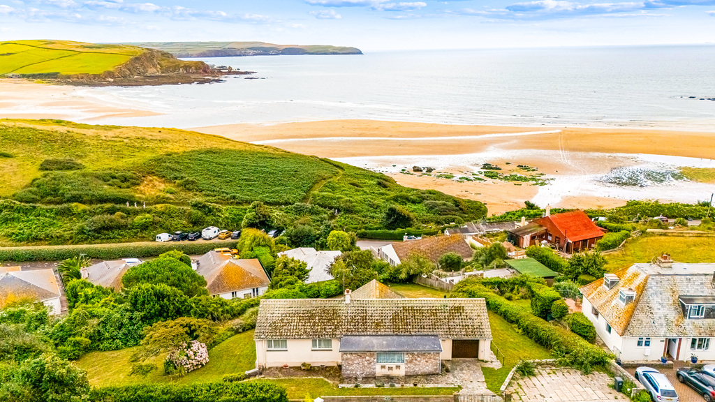 A superb opportunity to acquire one of Bigbury-on-Sea’s most distinctive properties, occupying a prime position with panoramic sea views and stunning gardens extending to just under half an acre.