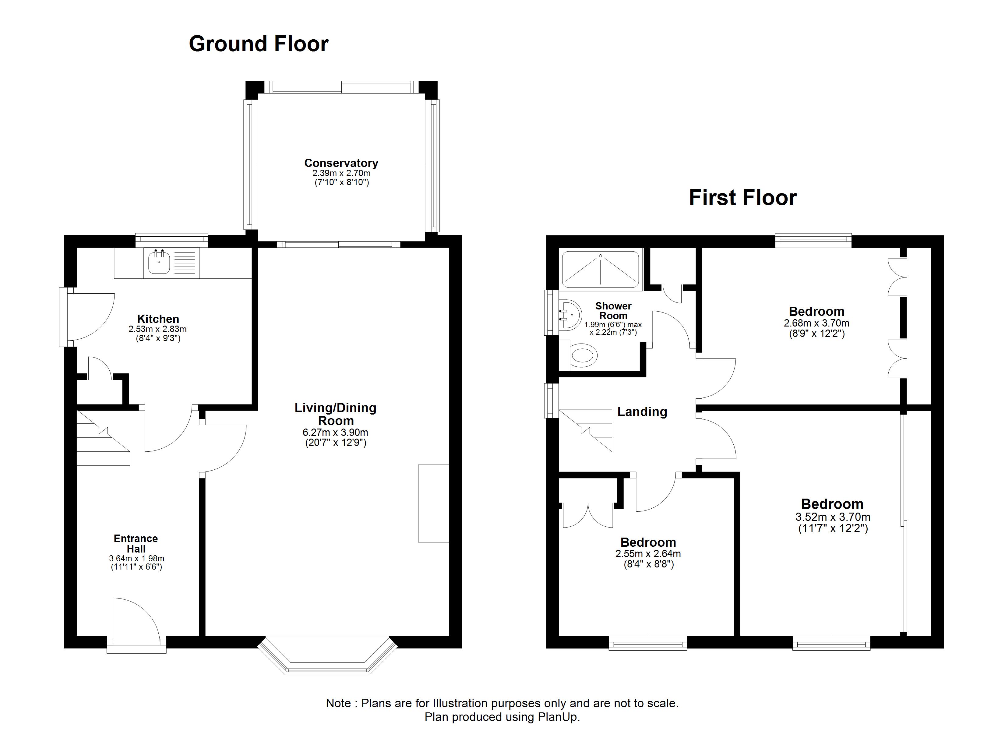 Upstairs, the first floor comprises three bedrooms, two of which benefit from fitted wardrobes, bedroom three having fitted hanging space, providing convenient storage solutions. A modern shower room completes the upper level.