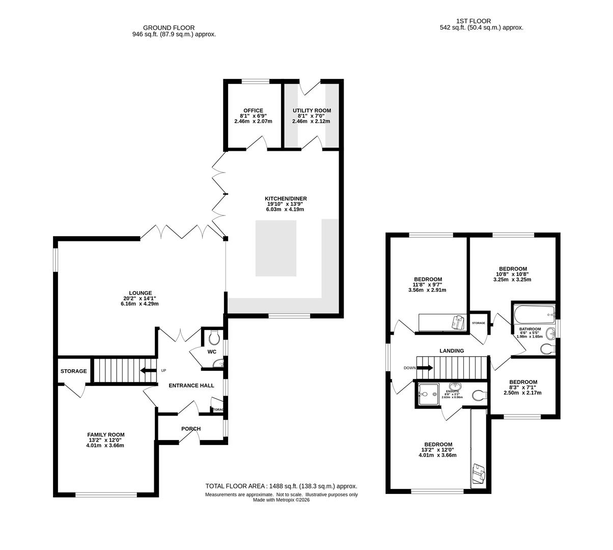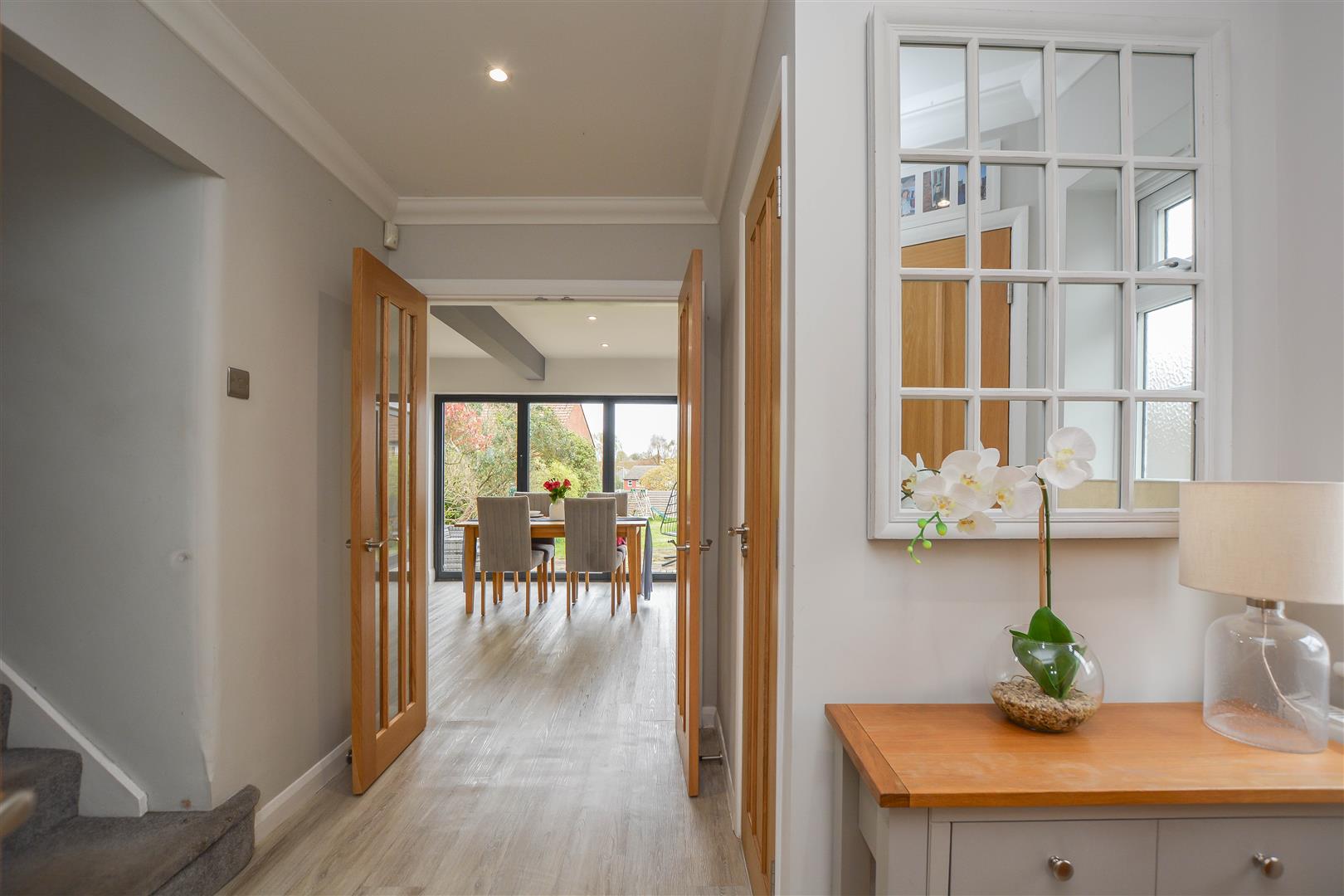 Upstairs, the landing leads to four well-proportioned bedrooms, with the principal bedroom benefiting from fitted wardrobes and an ensuite shower room. A modern family bathroom completes the accommodation.