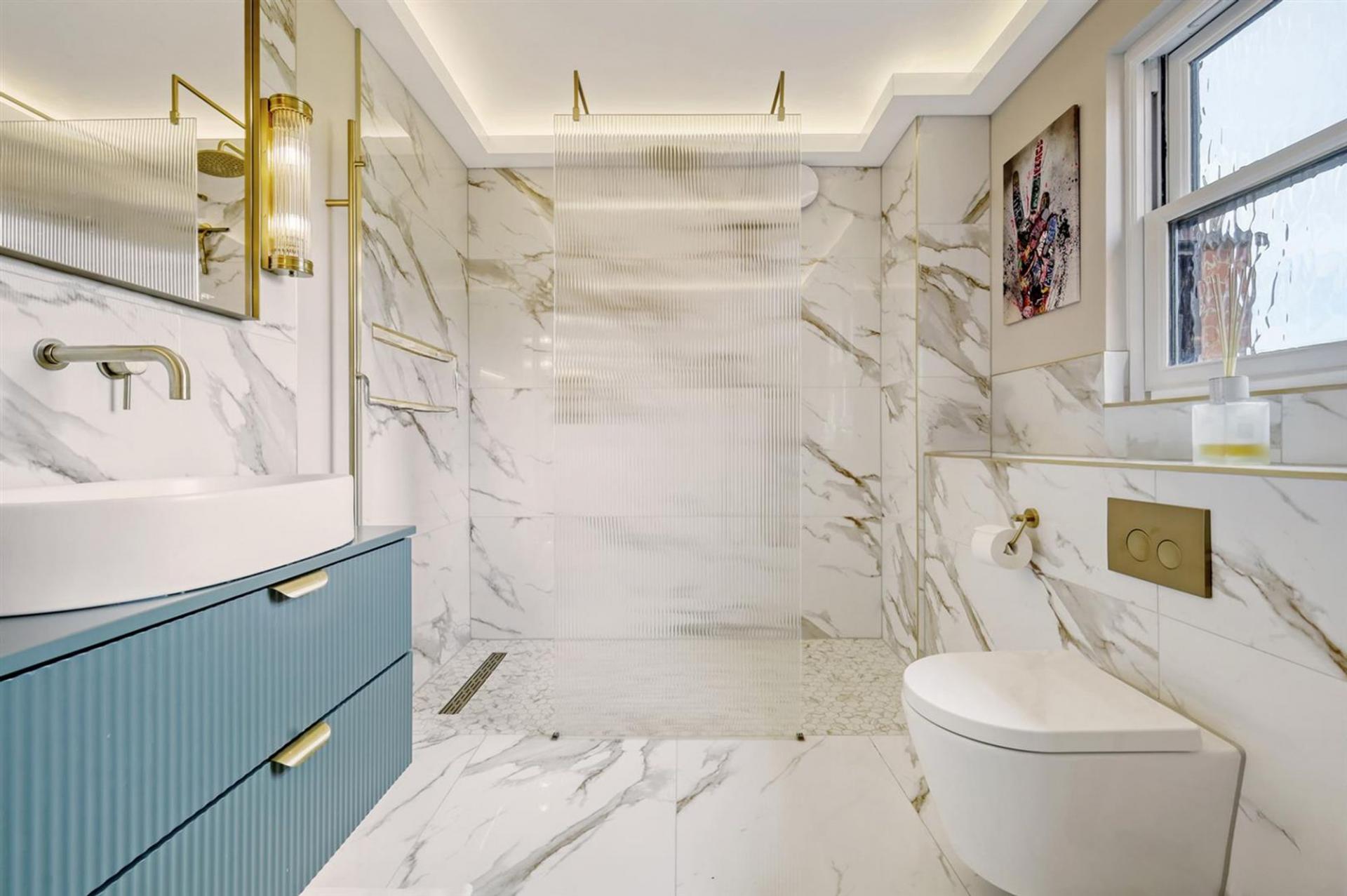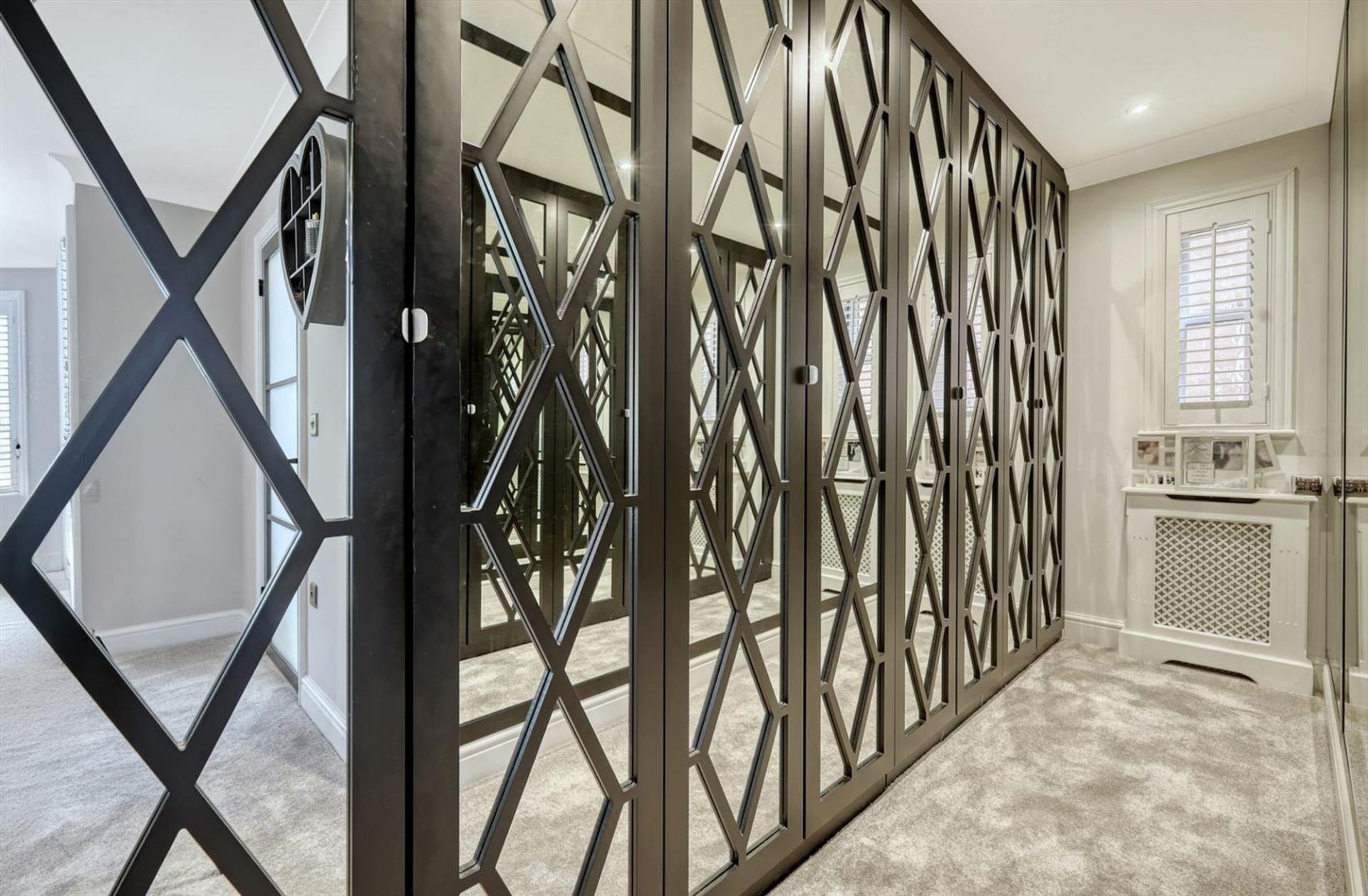 The entire top floor is dedicated to the principal suite, offering a sense of privacy and luxury. This superb space includes a large bedroom, a bespoke dressing area with fitted wardrobes, and a beautifully appointed bathroom with both bath and separate shower.