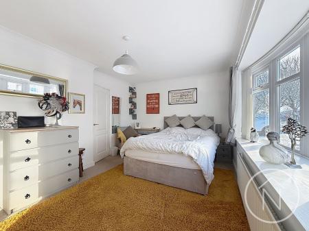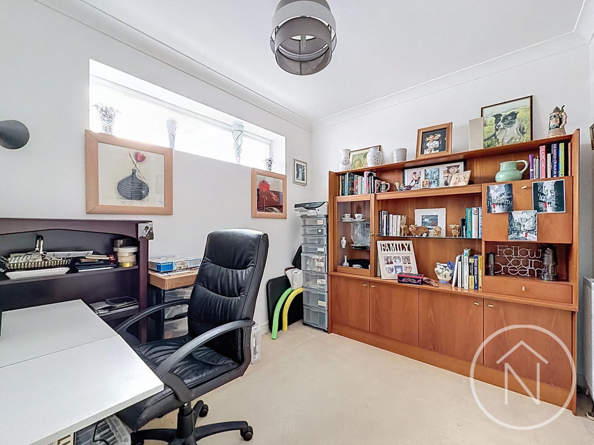 Bedrooms are designed with comfort in mind, featuring large bay windows, built-in wardrobes, and neutral, modern décor for a serene retreat. An additional office space creates the perfect environment for working from home or study. The inviting hallway sets the tone with elegant lighting, a decorative mirror, and a warm, neutral carpet. Further practical touches include under-cabinet kitchen lighting, wall-mounted radiators for efficient heating, and thoughtfully designed storage solutions throughout.