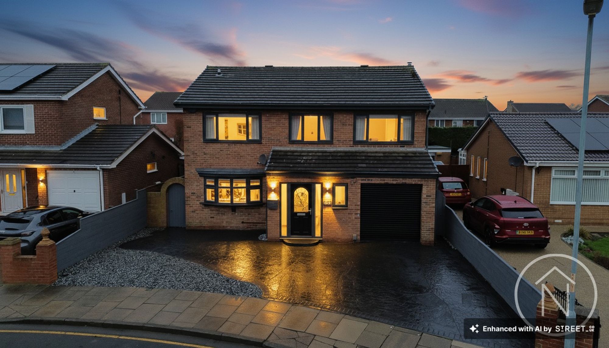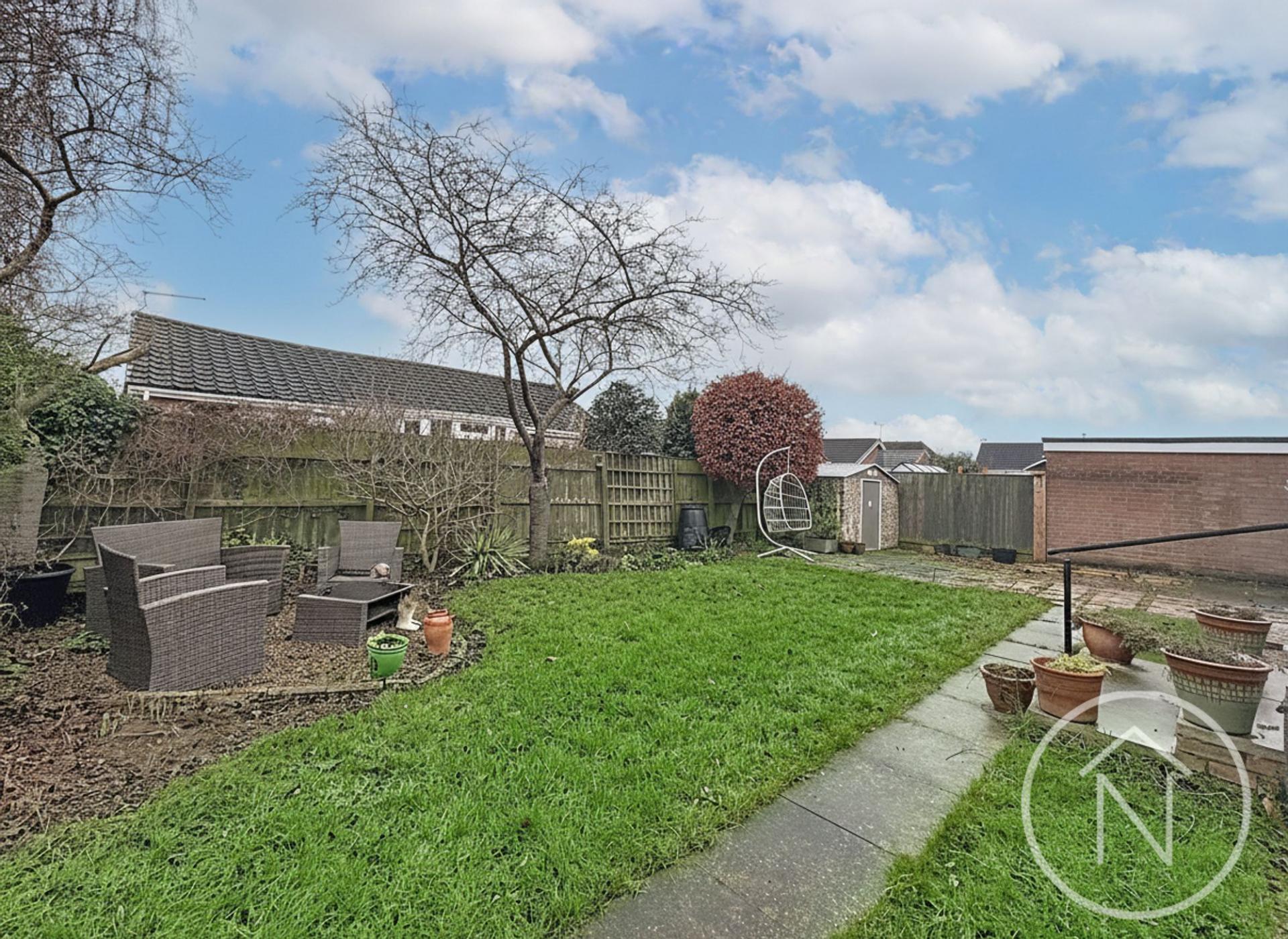 Additional standout features elevate the appeal of this exceptional home. The spacious garden is perfect for families, complete with a generous lawn, mature trees, a dedicated patio area for al fresco dining, an outdoor seating area, and a practical garden shed for extra storage. The property also benefits from off-road parking on a large driveway leading to an garage, ensuring ample space for vehicles and secure storage. Inside, a well-appointed utility room with washer and dryer offers direct outdoor access, while the compact WC and bathroom provide convenience.