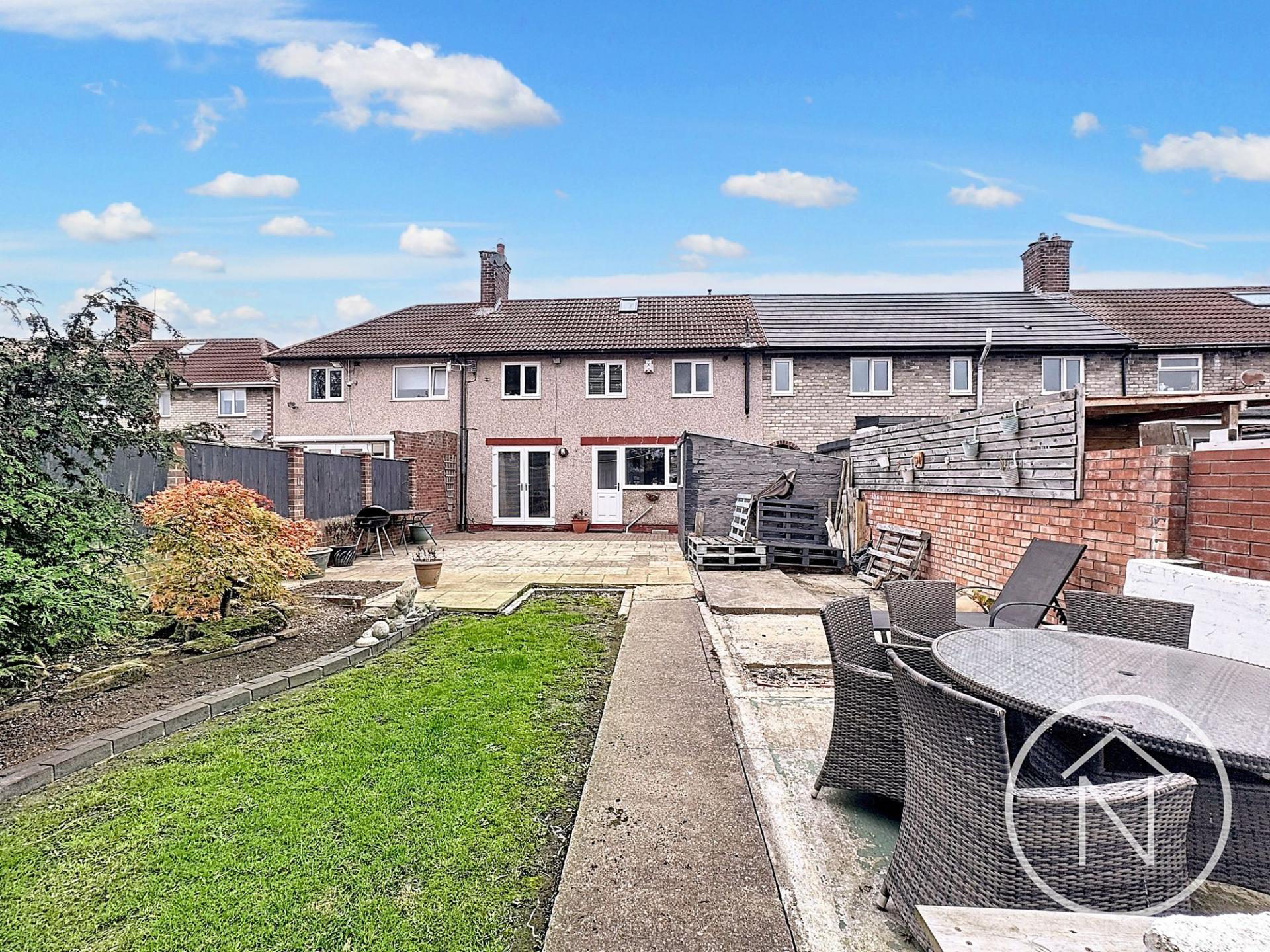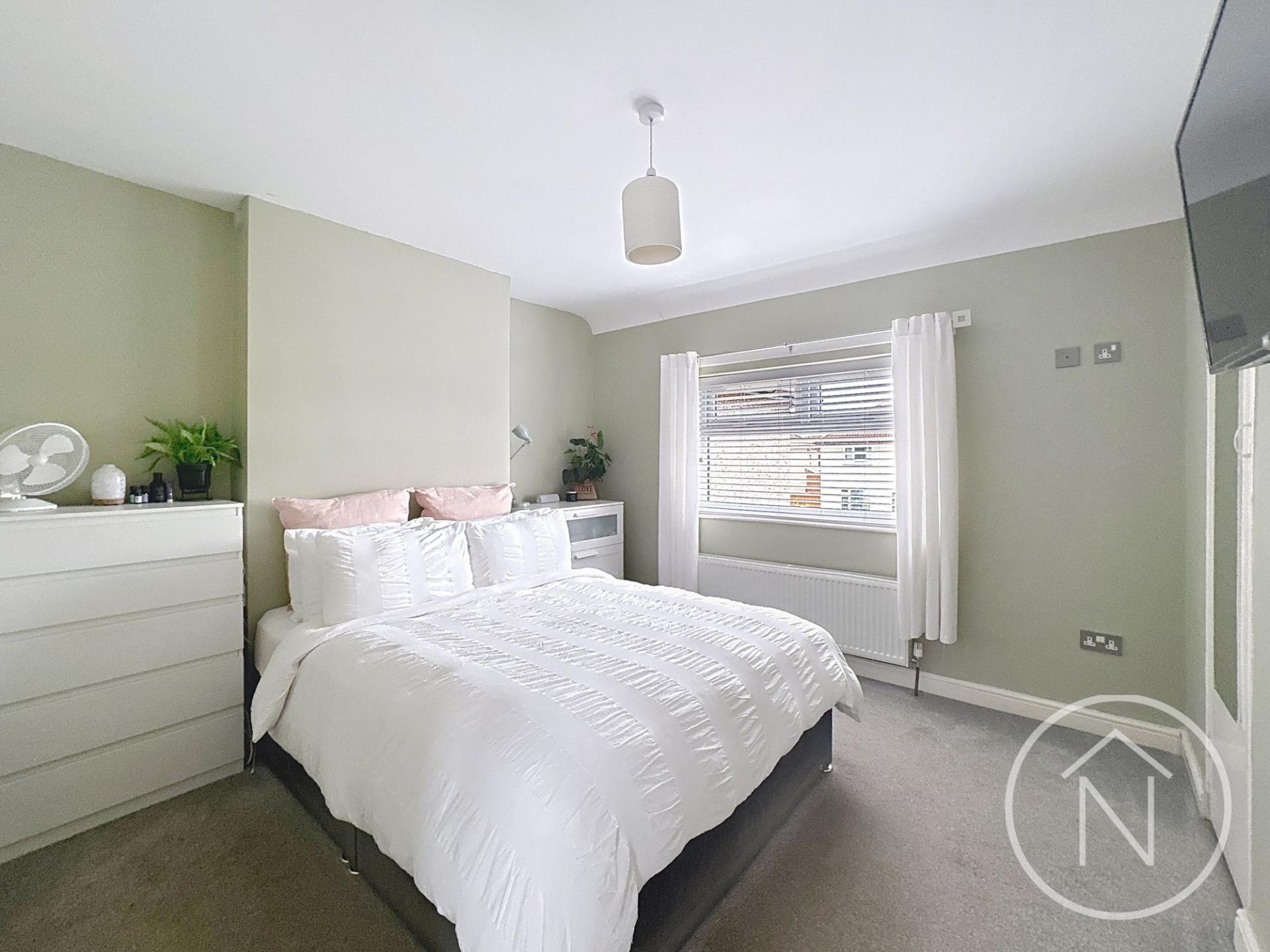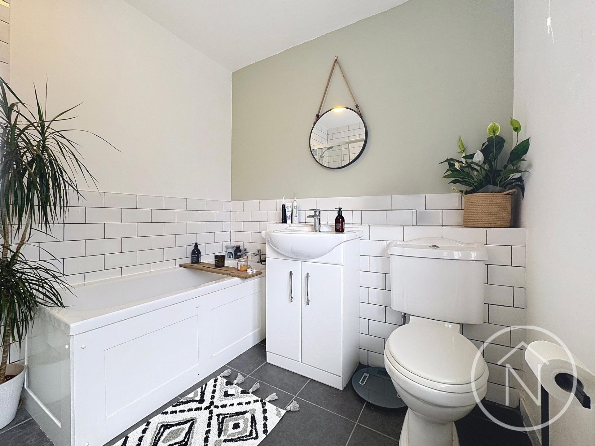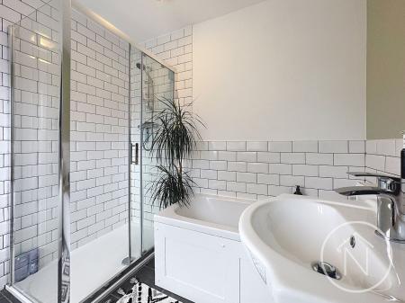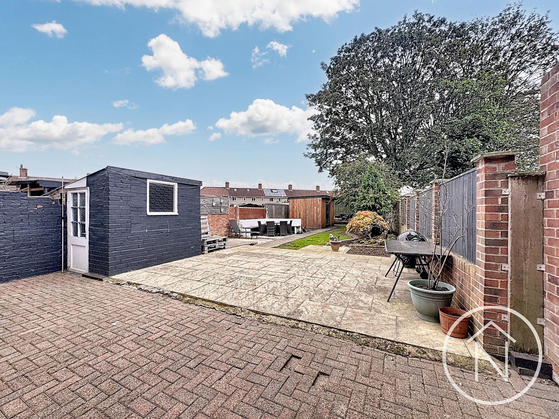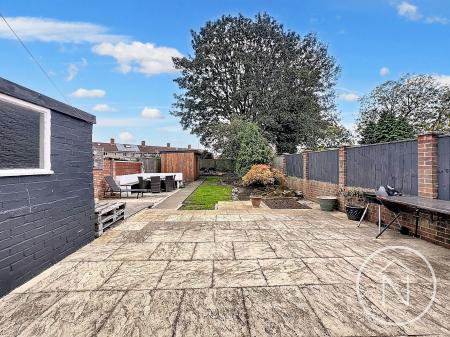 Upstairs, all three bedrooms benefit from large windows that fill the rooms with natural light, neutral décor, and practical built-in storage solutions, ensuring comfort and organisation. The modern bathroom is finished to a high standard, with classic white subway tiles, a bath and separate walk-in shower, and elegant fixtures for a spa-like atmosphere. The exterior impresses with a well-maintained, fenced garden boasting a spacious patio and lawn, an outdoor seating area, and a storage shed for added convenience. Off-road parking at the front of the property completes this family-friendly home, providing both security and kerb appeal. This property is ideal for those seeking stylish, low-maintenance living with excellent indoor and outdoor spaces.