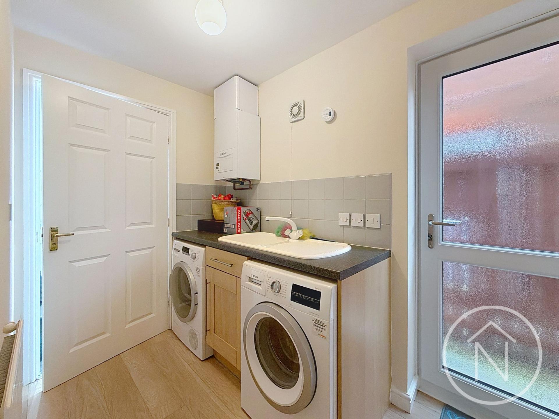 Additional highlights include three two bathrooms and a ground floor with contemporary fixtures, walk-in showers, and marble-effect tiling, ensuring a sense of luxury throughout. The dedicated utility room provides practical laundry solutions with direct outdoor access. Outside, the property boasts a well-maintained front lawn, off-road parking, and an attached garage for added convenience and security. The enclosed garden is perfect for families, featuring a patio area with outdoor seating and a garden shed for extra storage. This home offers a harmonious blend of modern amenities, stylish finishes, and spacious living - ready to welcome its next owners.
