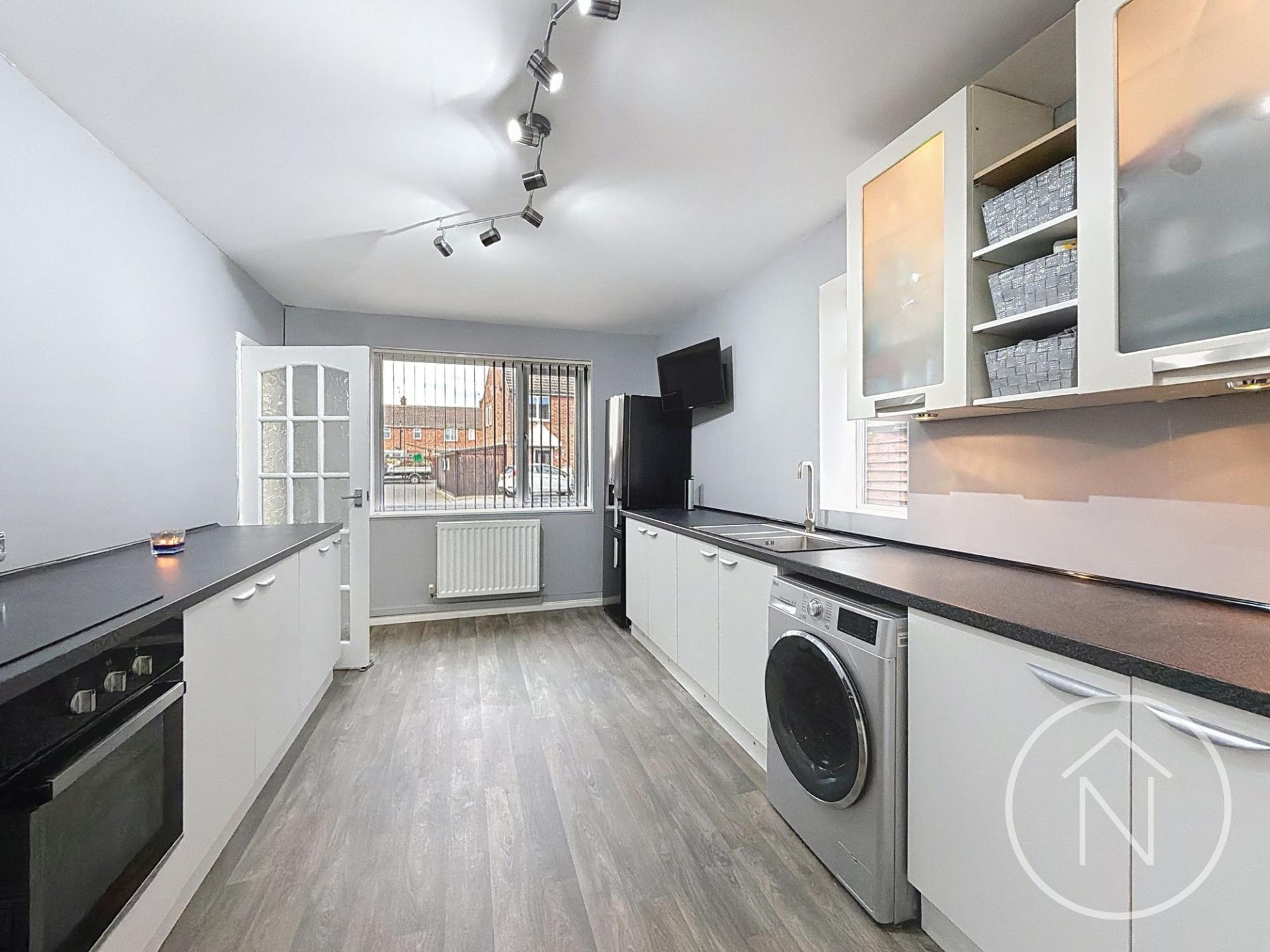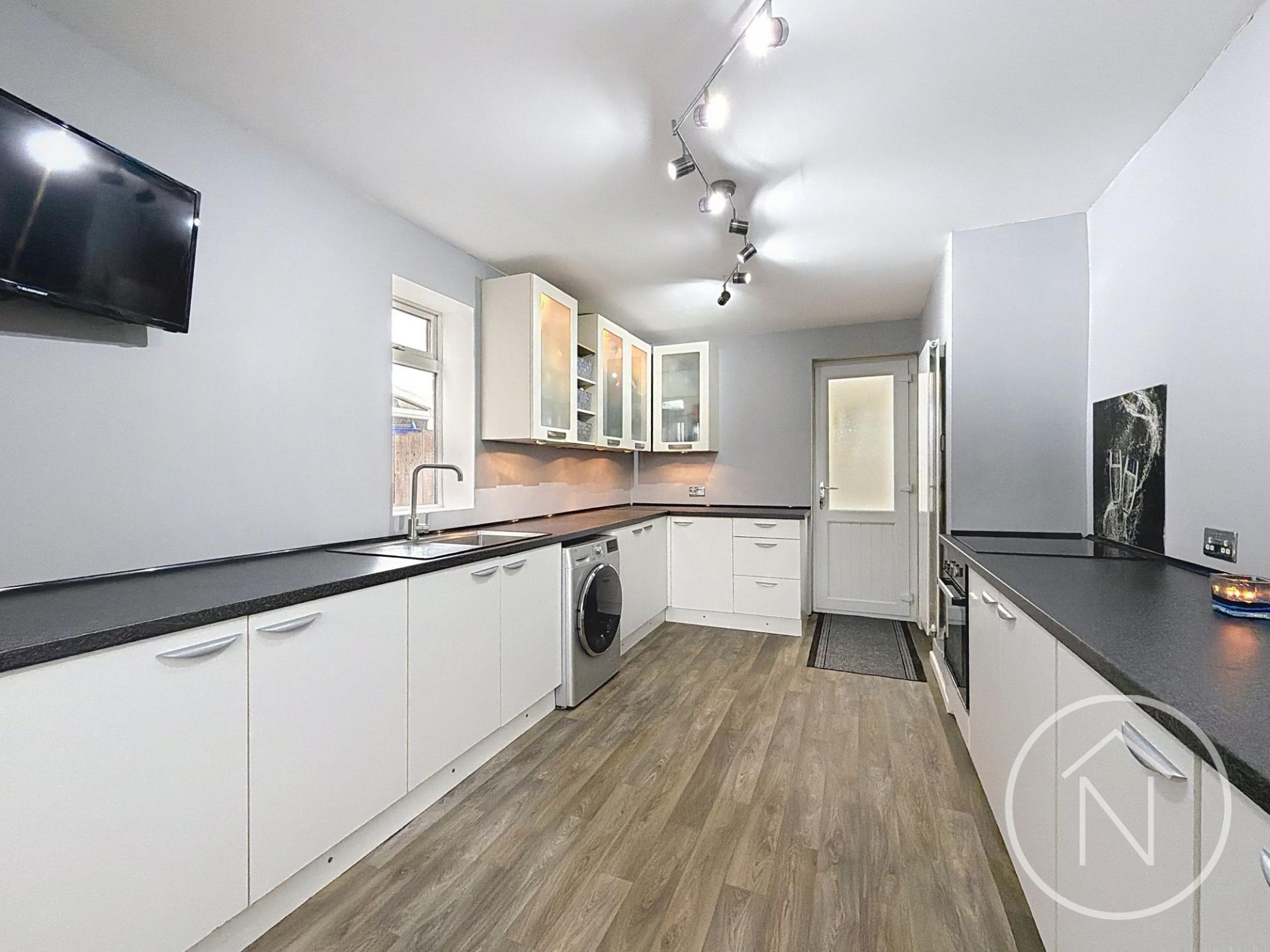 This impressive three-bedroom, one-bathroom semi-detached house offers a modern and spacious layout ideal for contemporary living and available with no onward chain. The property features two generous reception rooms, both finished with neutral decor, creating versatile spaces for relaxation and entertaining. The bright, modern kitchen is fitted with sleek cabinetry, under-cabinet lighting, and ample countertop space, making it both stylish and practical. Large windows throughout the home flood each room with natural light, enhancing the open and airy feel.