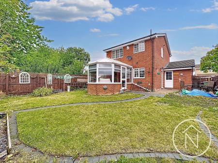 The property further benefits from a stunning conservatory overlooking the well maintained south facing garden and patio, offering an additional space for relaxation or entertaining guests. All three bedrooms are bright and spacious, each with large windows that flood the rooms with natural light and built-in wardrobes for excellent storage solutions. The bathrooms are finished to a high modern standard, with stylish fixtures and elegant decor. Practical features such as off-road parking, a spacious driveway, and a garage provide convenience and peace of mind for families and professionals alike. This home is ideal for those seeking a versatile, modern living space with generous outdoor areas in a detached, private setting.
