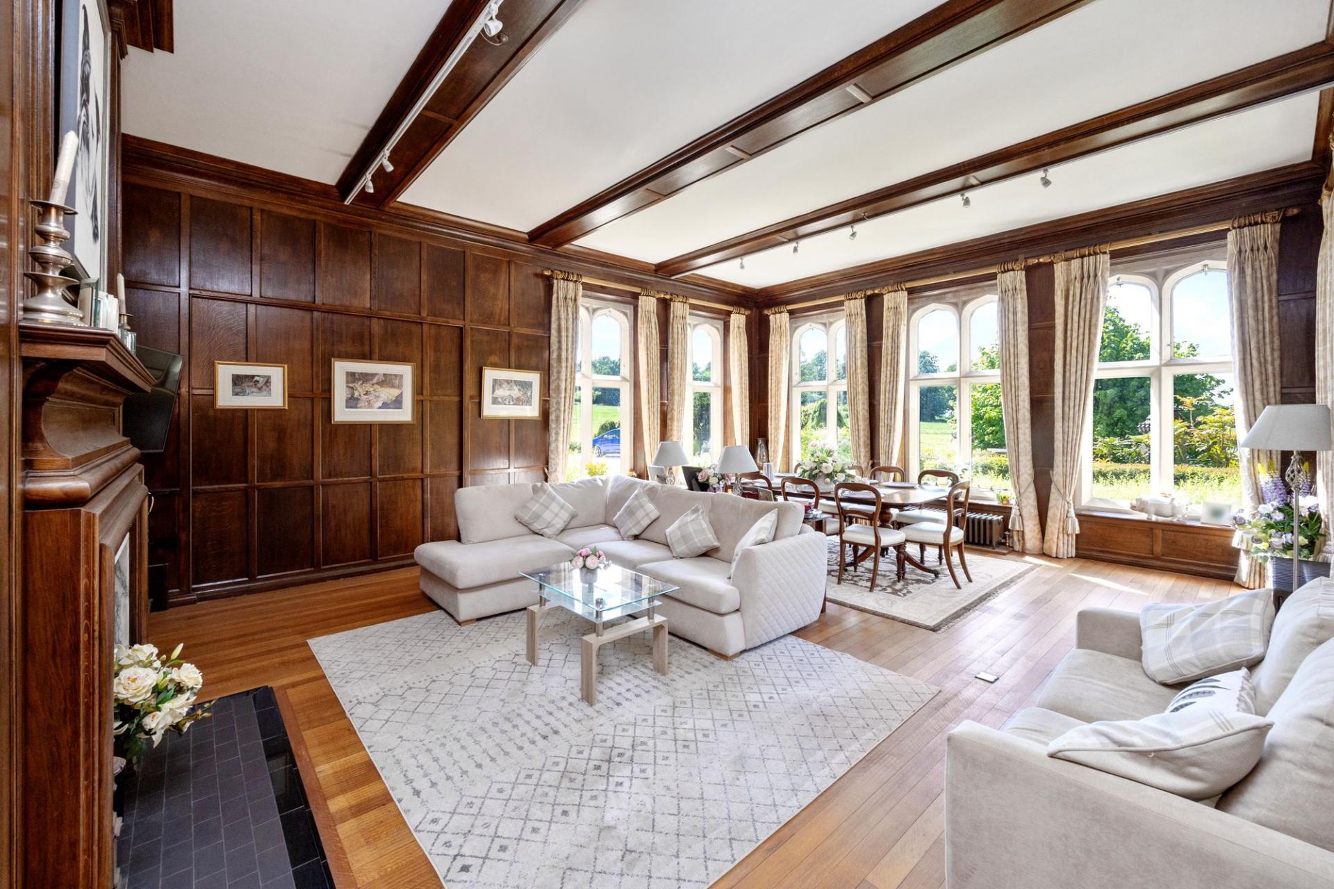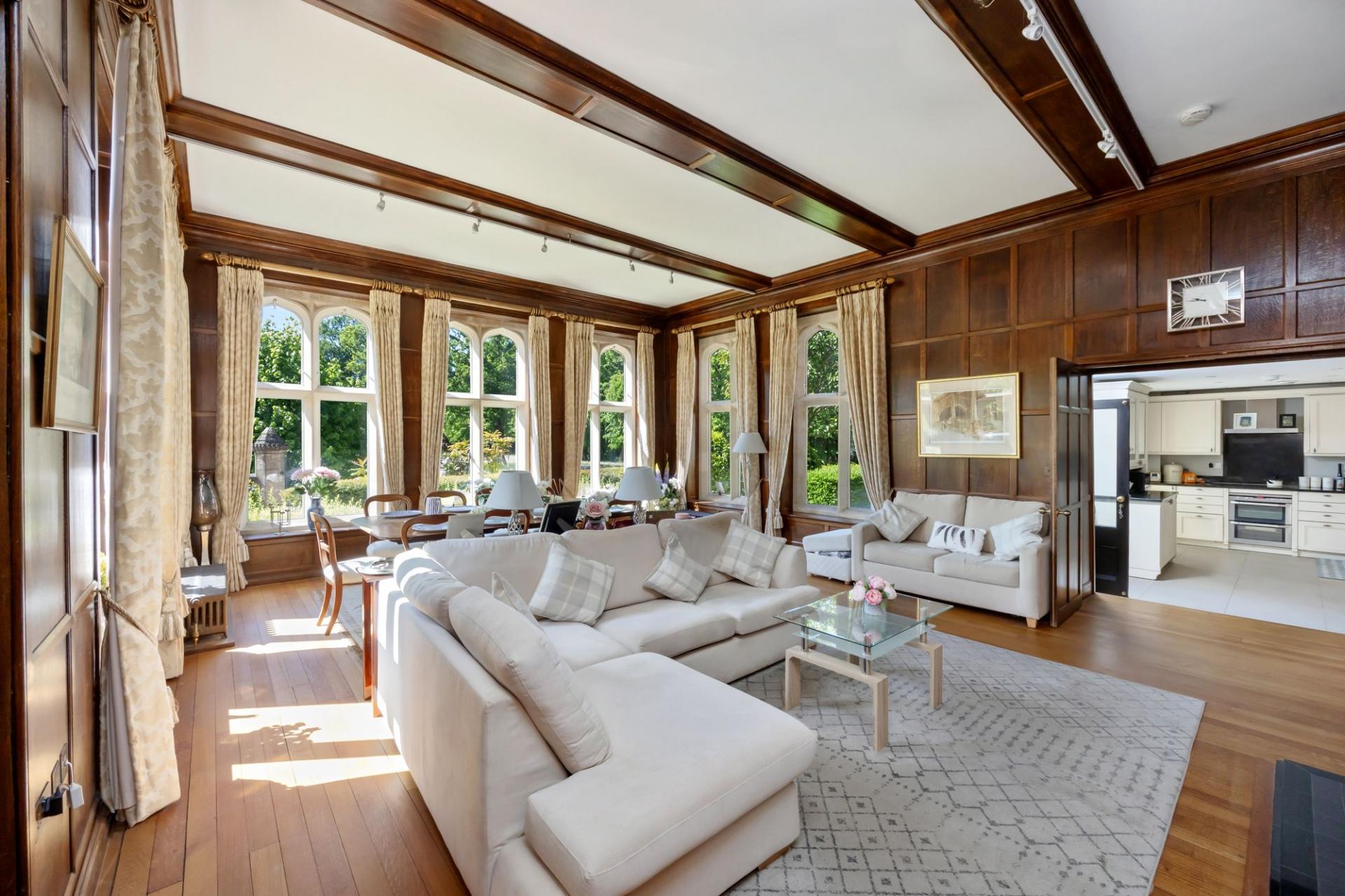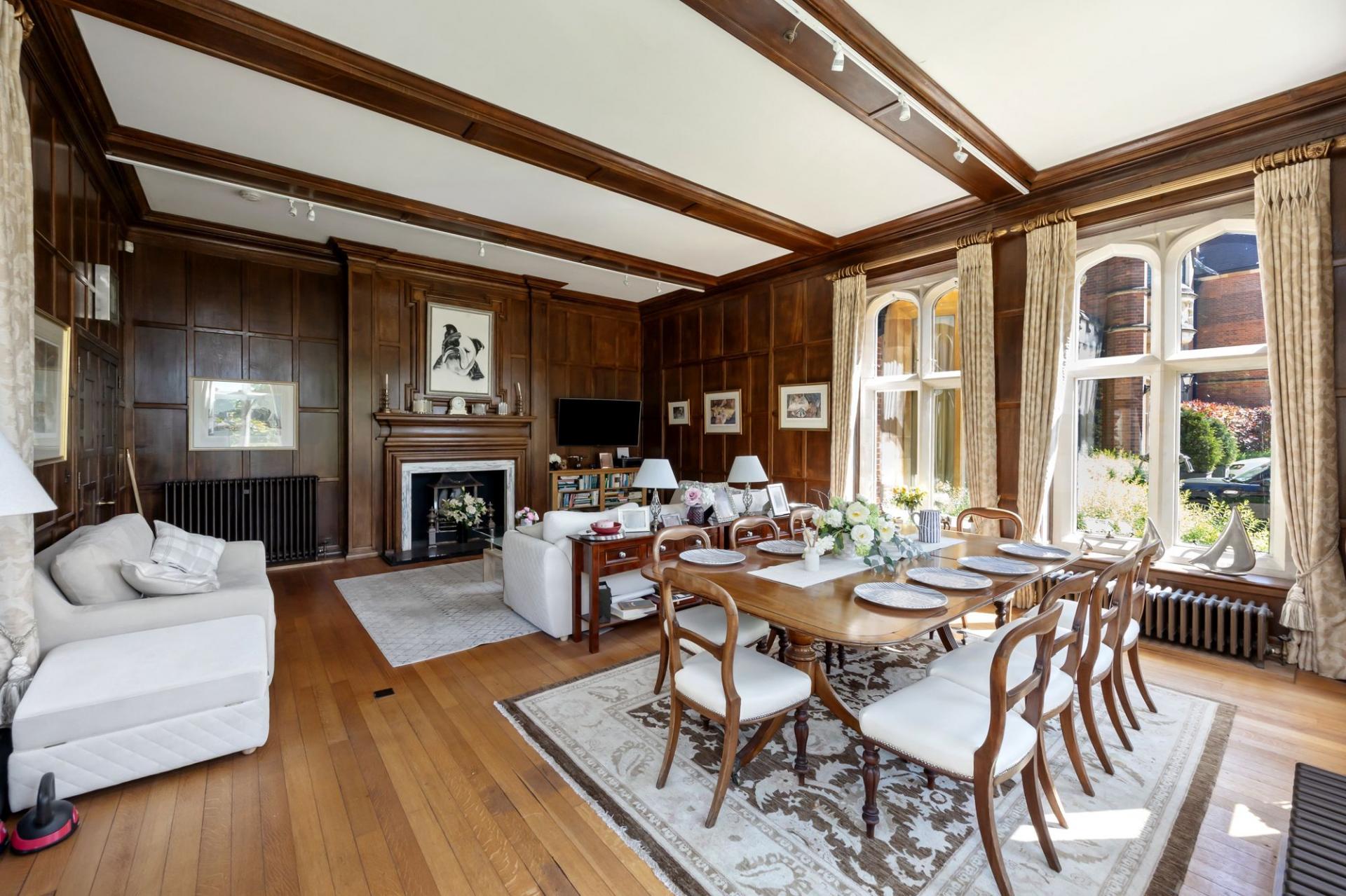 - Large main reception room with high ceilings and character features