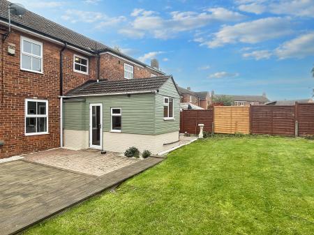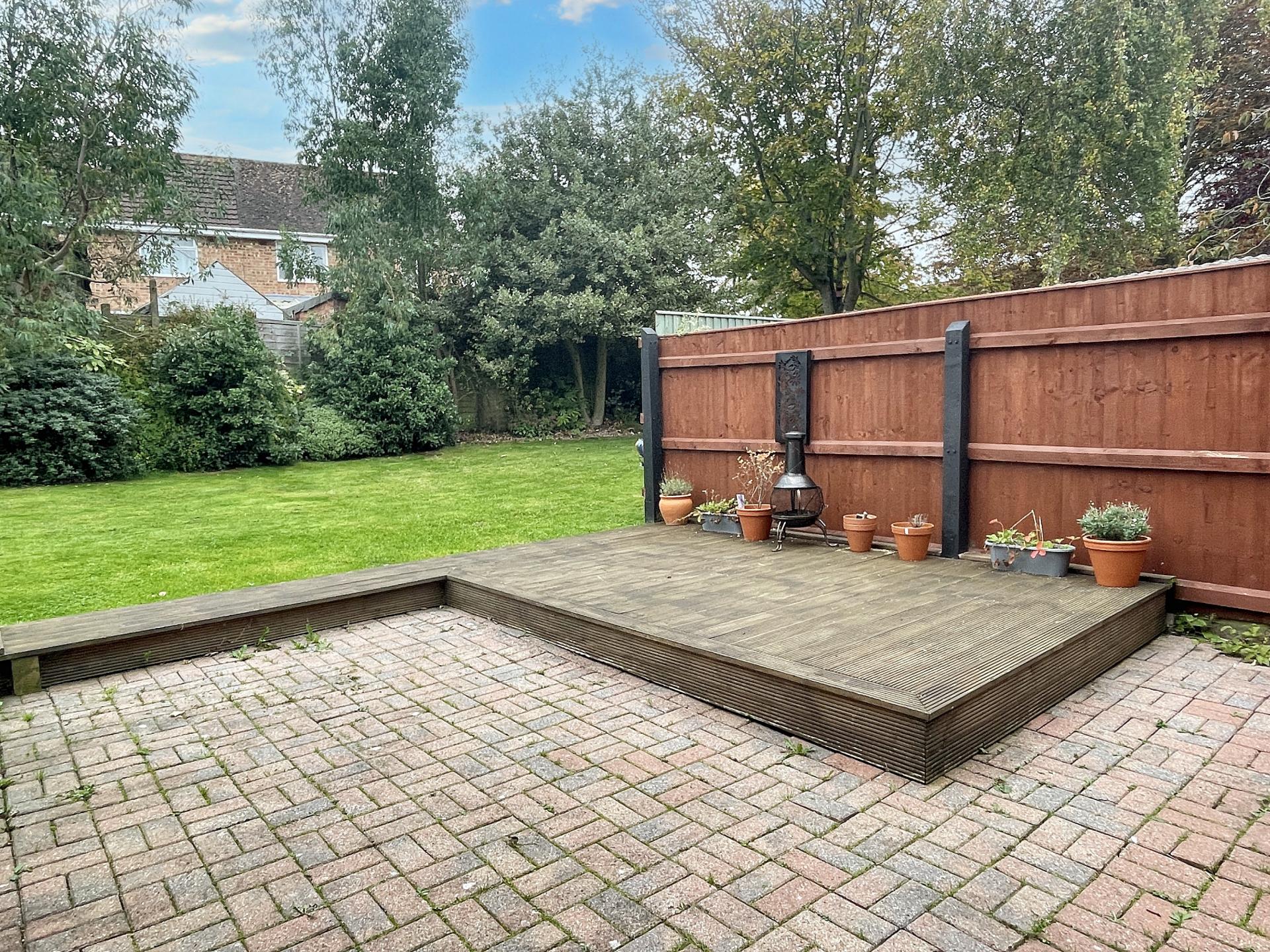 - Large rear garden with decking area and garden shed