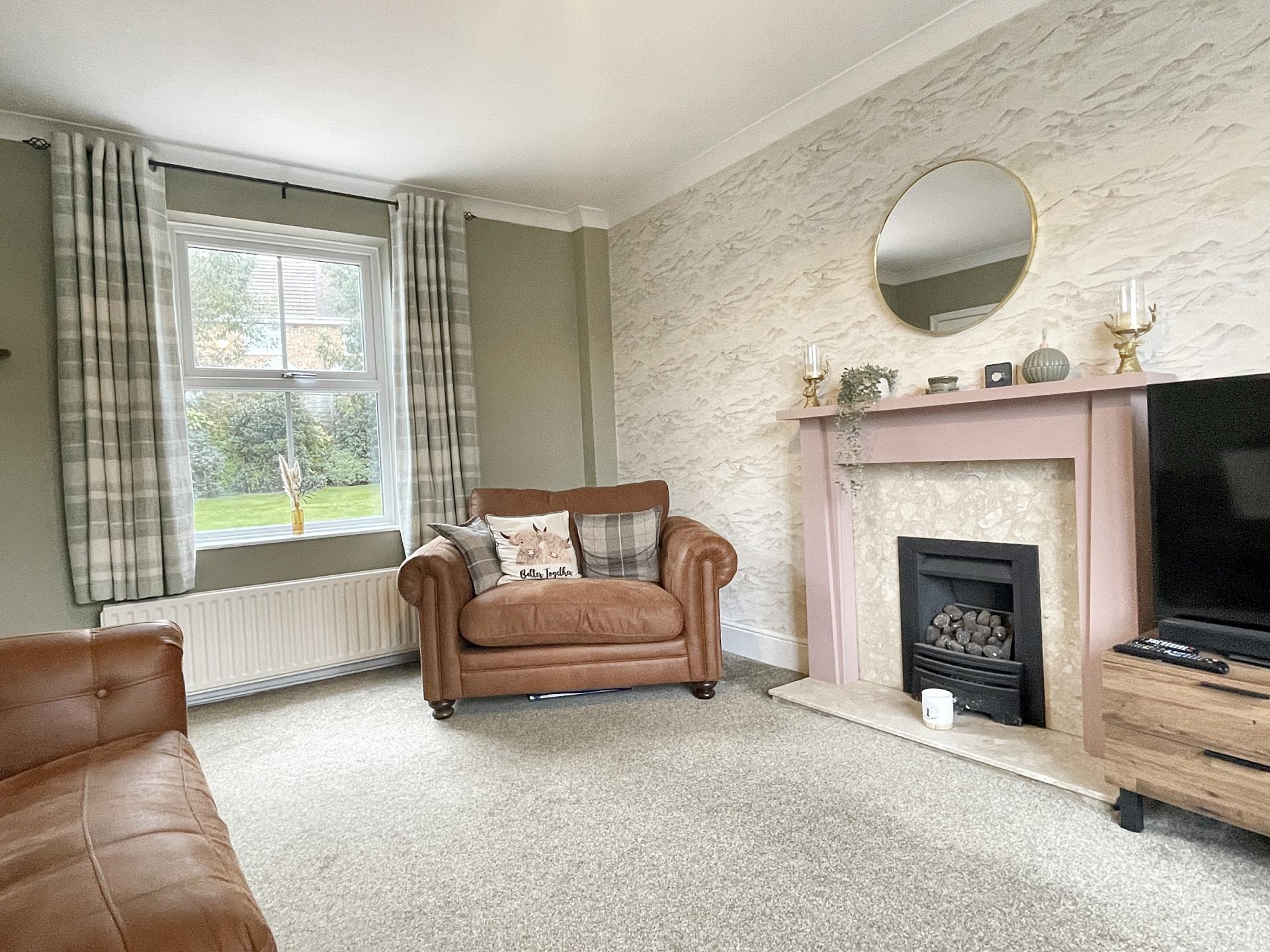 - Dual-aspect lounge with feature fireplace and gas fire