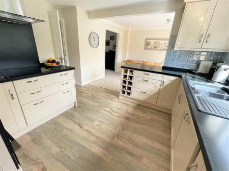 Utility Room - 2.03m x 1.65m (6'8 x 5'5) - Having fitted wall and larder unit, rolled edge work surface, space and plumbing for washing machine, wall mounted gas central heating boiler, central heating radiator, continuation of the wood effect flooring, extractor and double glazed exterior door. A further door leads through into: