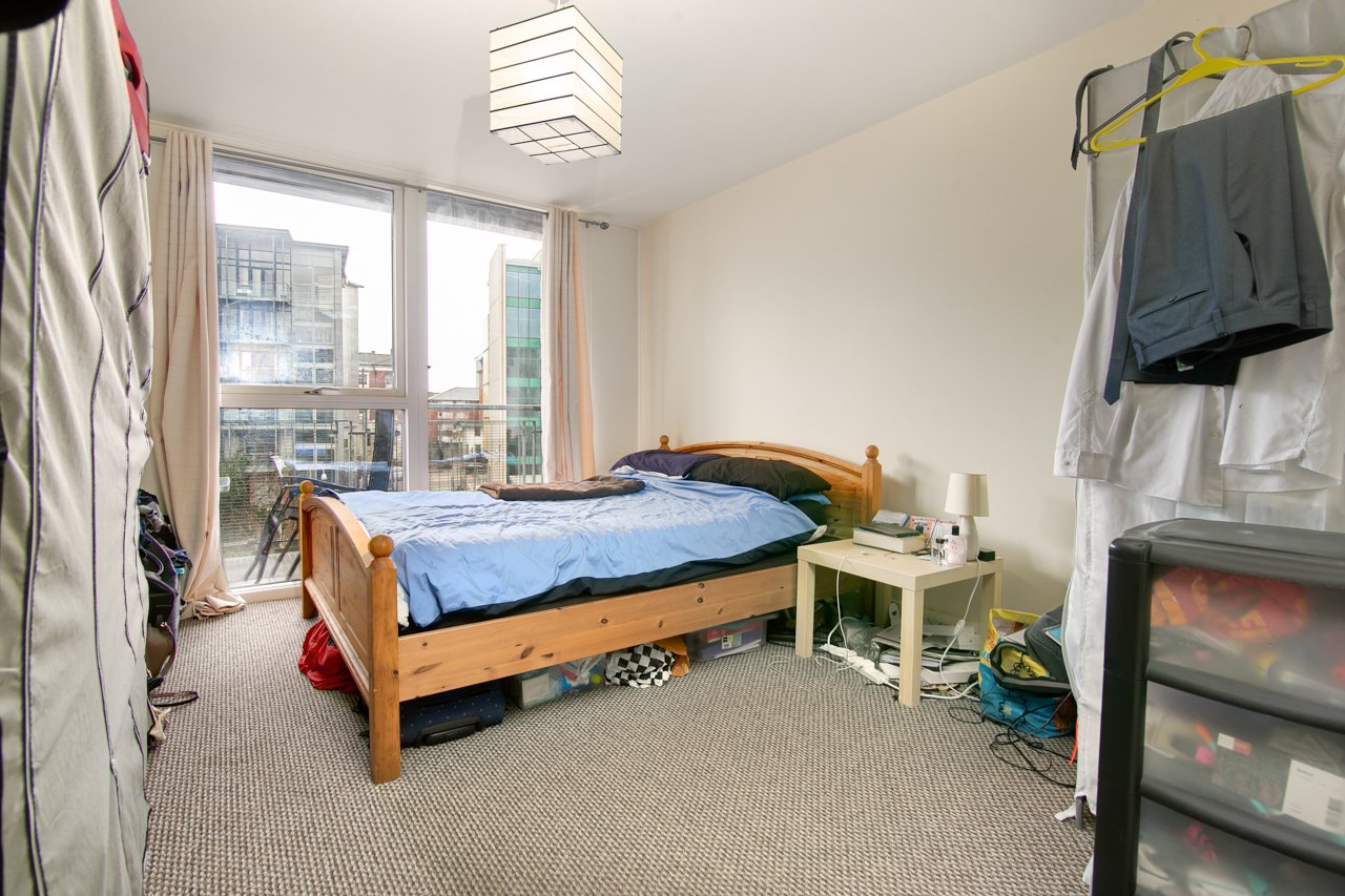 Situated on the 4th floor with views over the city skyline, this apartment comprises of entrance hallway, large double bedroom, family size bathroom with shower, storage cupboard and a large open-plan living area with integrated kitchen leading through to a large full length balcony.
