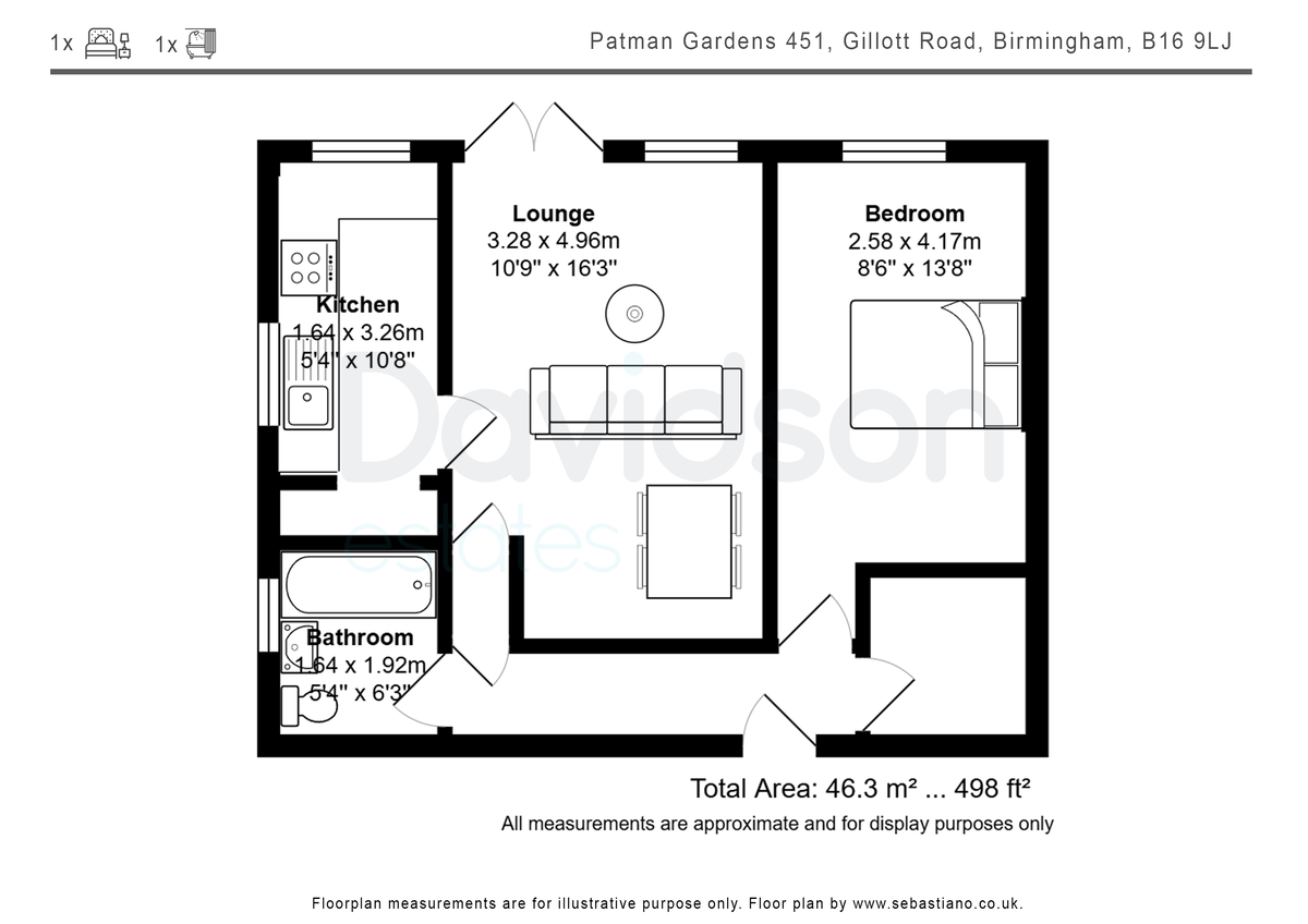 The flat comprises one bedroom, a spacious living area, a fitted kitchen, and a bathroom, offering comfortable living spaces tailored to the needs of its residents.