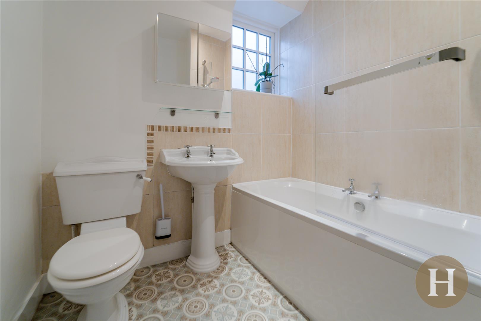 Family Bathroom - Double glazed window to front elevation, white suite comprising panelled bath with glazed screen, wash hand basin, low level wc, ceiling spotlights, tiled flooring and part tiled walls.