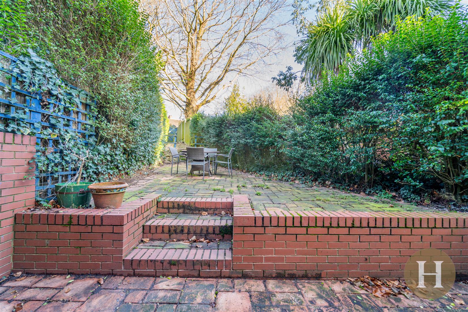 Rear Garden - The easily maintained rear gardens are set on three tiers and are principally paved with dwarfed wall, mature hedging, timber garden bar and is fully enclosed.