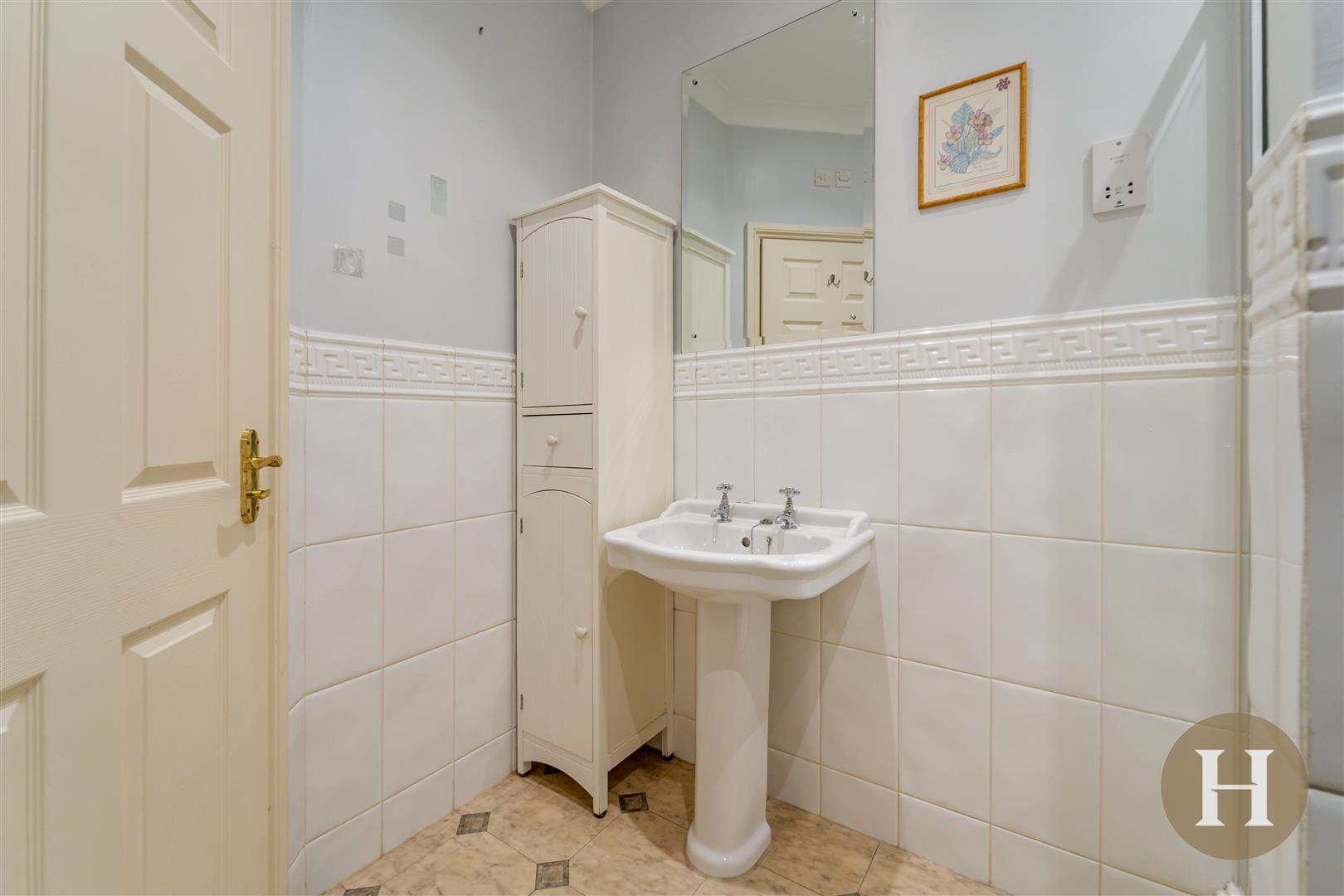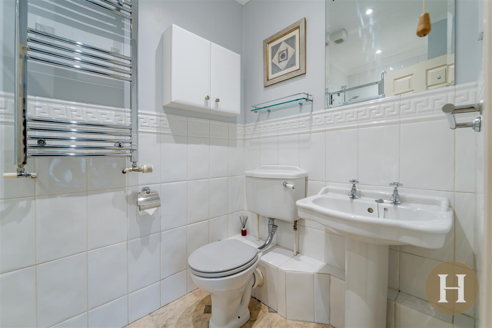 Ensuite - Low level flush WC, hand wash basin and walk in mains shower. Extractor fan, towel radiator and being partially tiled.