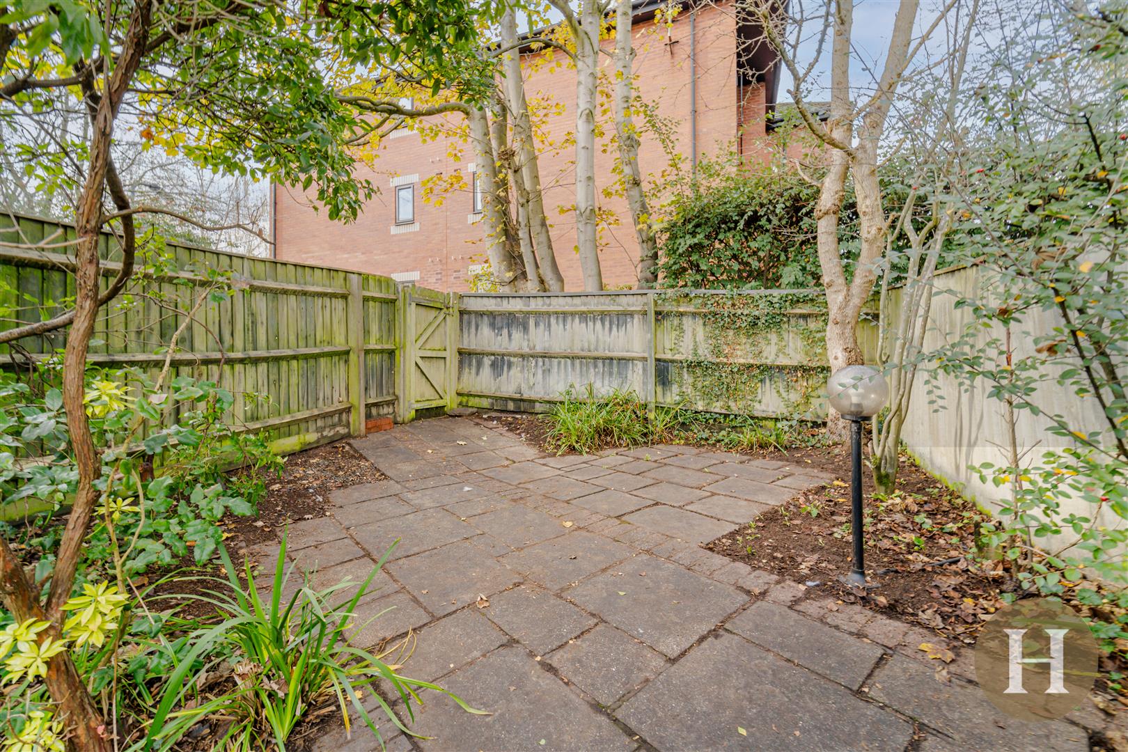 Garden - Private rear garden predominantly consisting of block paved patio area, fenced boundaries and mature shrubs and trees.