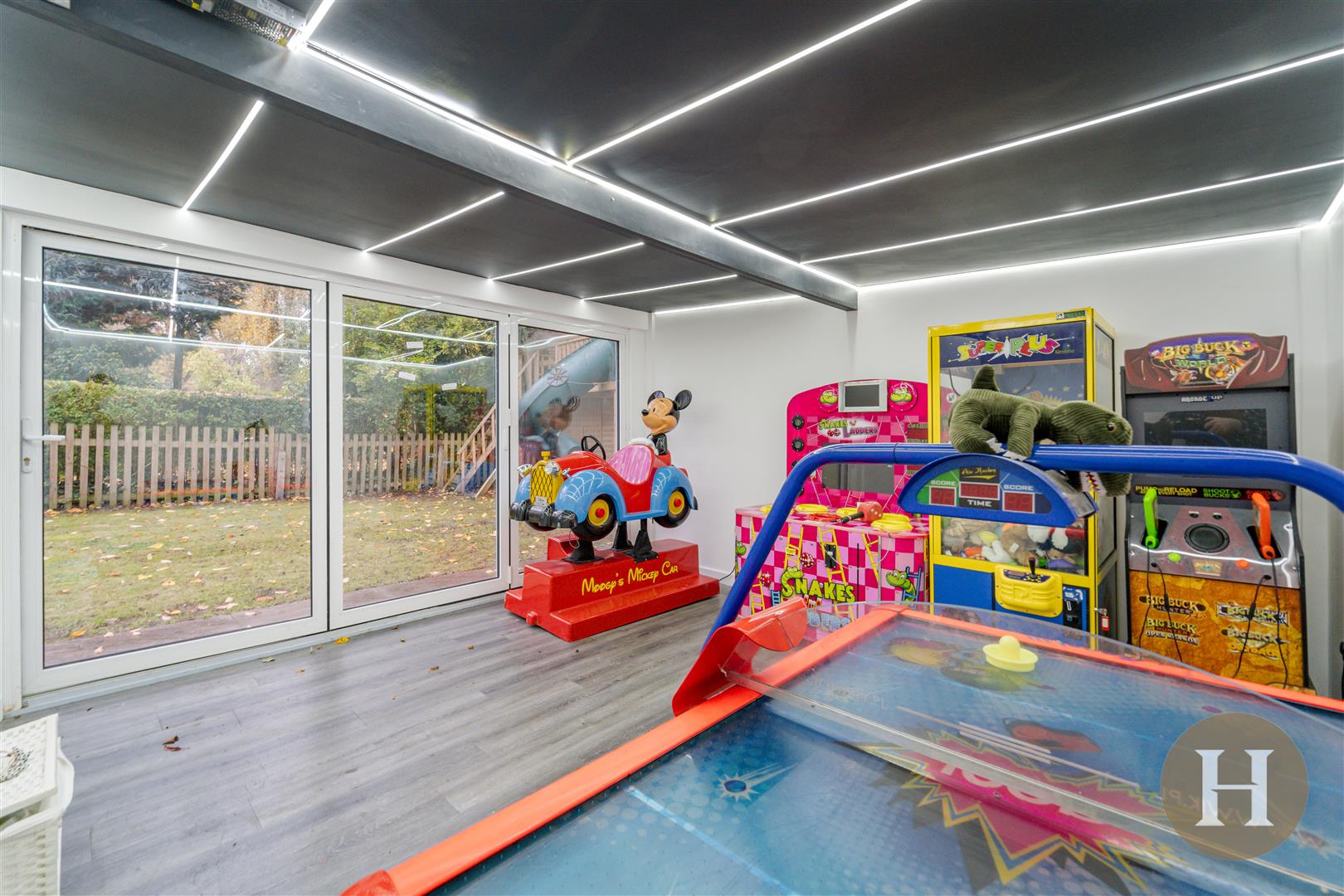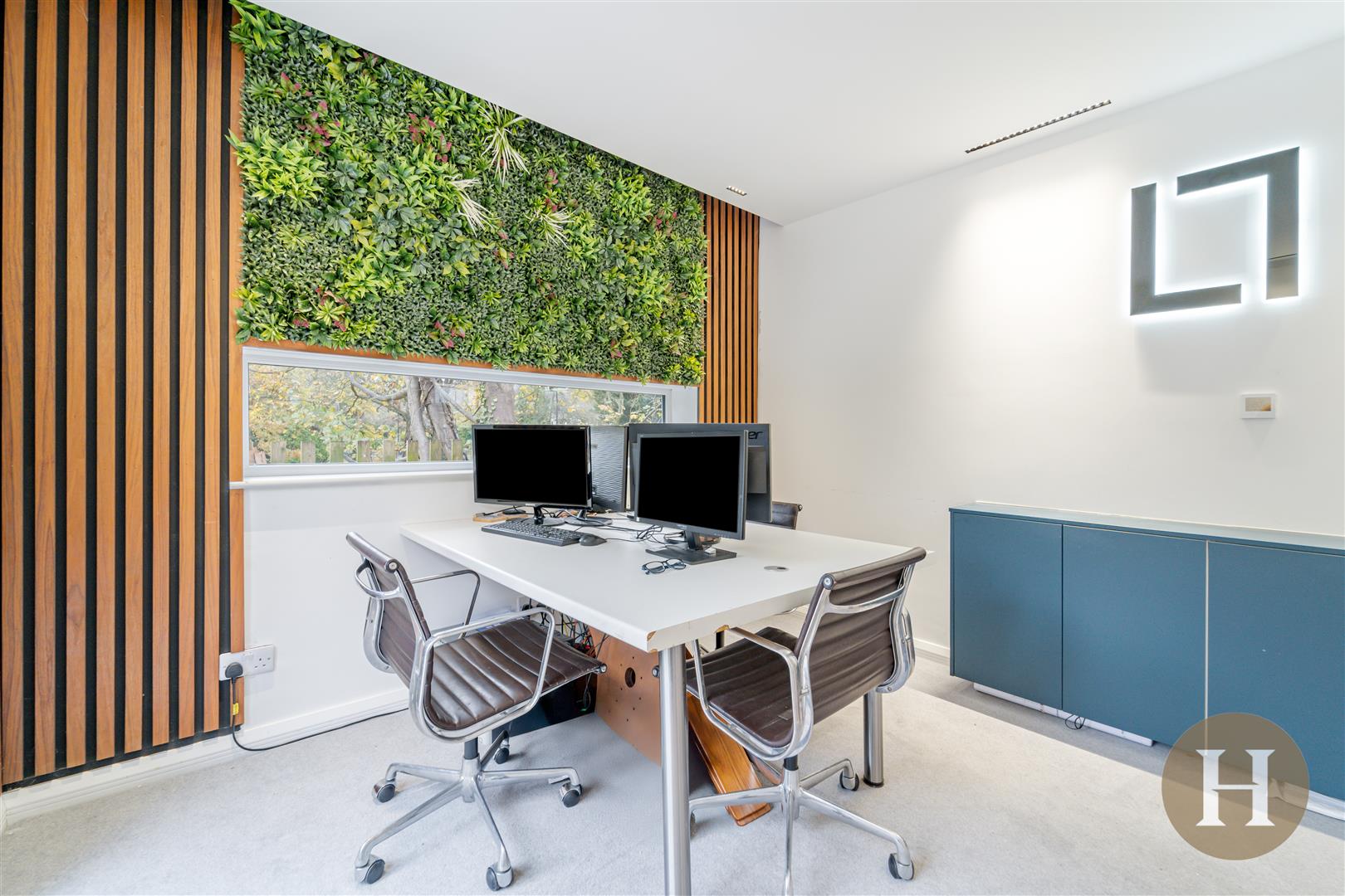 Office - Aluminium bi-fold doors leading to the patio and window to the side elevation. Walnut feature wall with living effect wall feature, underfloor heating and Cat Five network. Two floor to ceiling intelligent windows offering two options of frosted or clear.