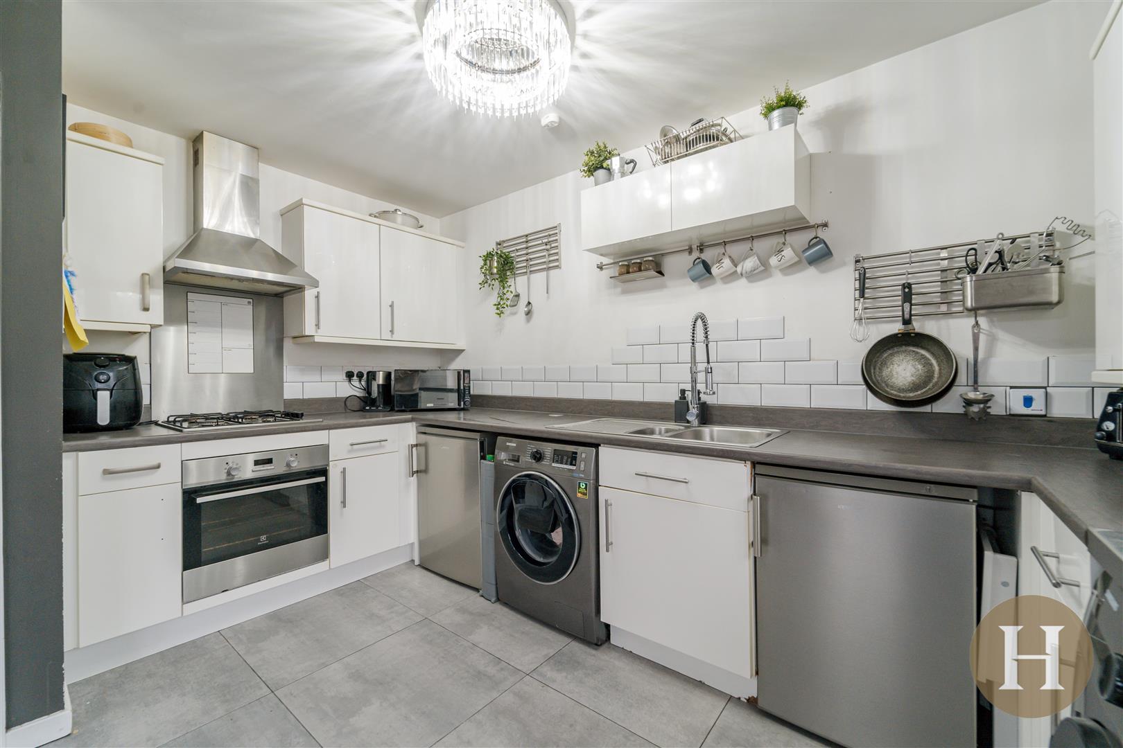 Kitchen - Modern fitted kitchen with a range of base and wall units. Fitted oven, hob and extractor over. Tiled flooring and partially tiled splashbacks, sink and drainer unit along with plumbing for washing machine. Space for undercounter fidge and freezer, ceiling light point and double glazed window.
