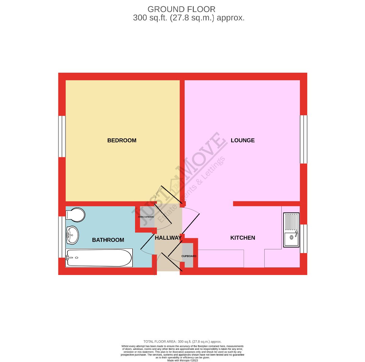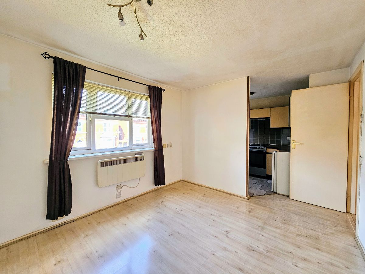 Accessed via a secure communal entrance, the apartment offers an entrance hallway leading into the lounge. The separate kitchen comes equipped with undercounter white goods, providing a practical space for everyday living. The double bedroom benefits from two pine wardrobes which are included in the sale, while the bathroom features a shower fitting over the bath. Double-glazed windows and electric heating service the property throughout, adding to the overall comfort.