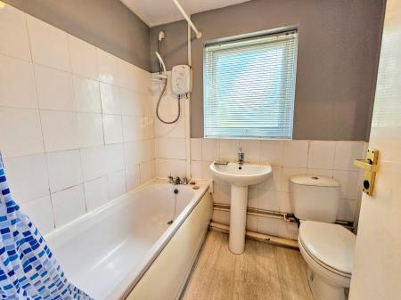 Fitted with a white suite the bathroom comprises of a panelled bath with shower over, low level flush w.c., wash hand basin, splashback tiling, double glazed window and ceiling light point.