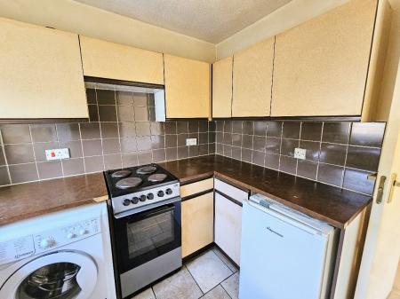 Being fitted with a range of wall and base mounted units, roll edge work surfaces, splashback tiling, stainless steel sink and drainer unit, plumbing for a washing machine, cooker space, undercounter space for fridge, tiled effect flooring, ceiling light point and double glazed window to the front aspect.