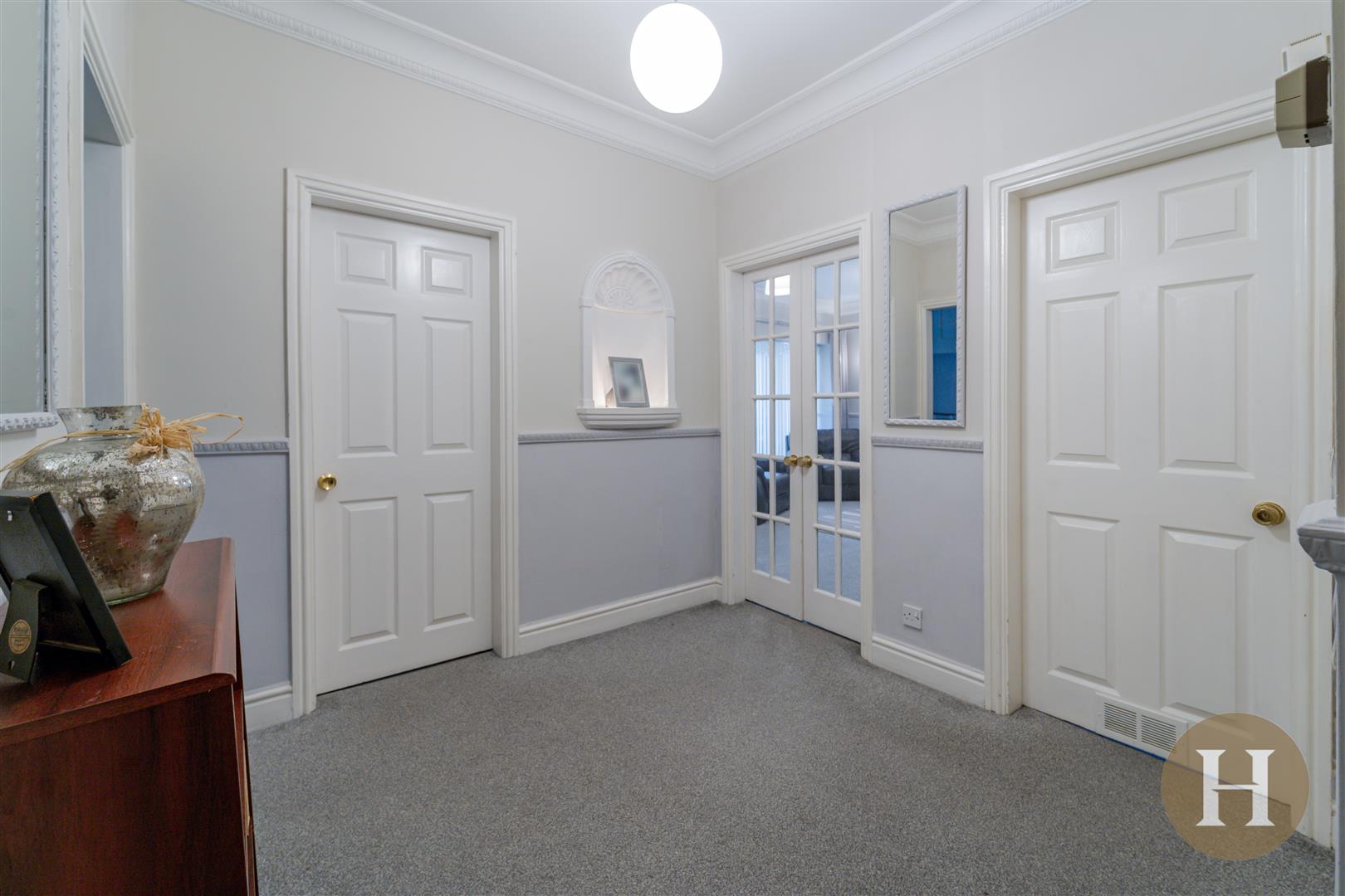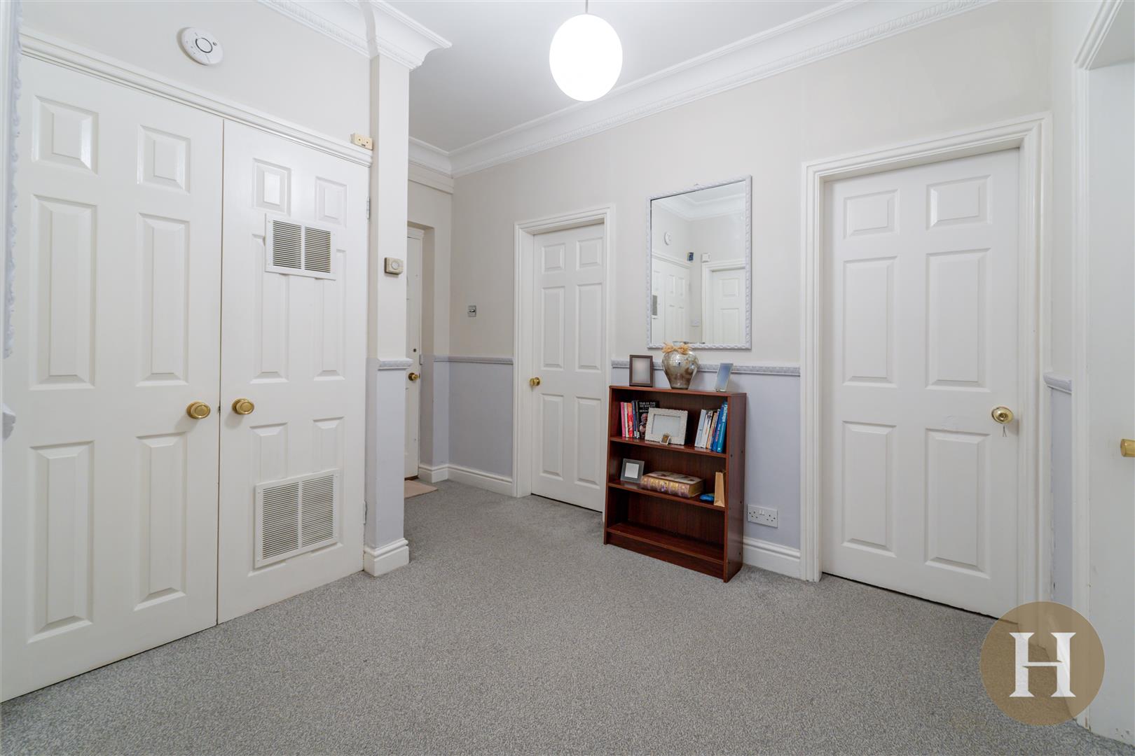Hallway - Spacious entrance hallway benefitting from storage cupboard, coving and ceiling Rose. Solid wood front door, carpeted flooring and ceiling light point.
