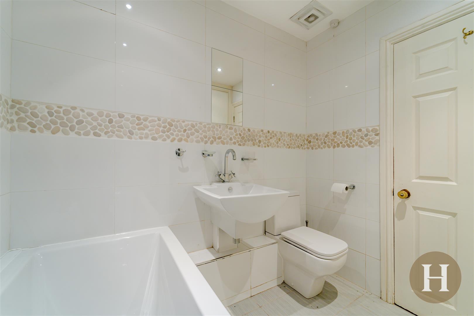 En-Suite Bathroom - Modern bathroom suite with floor to ceiling tiling, low level flush WC, floating hand wash basin and fitted bath. Storage cupboard, mirrored radiator and ceiling light point.