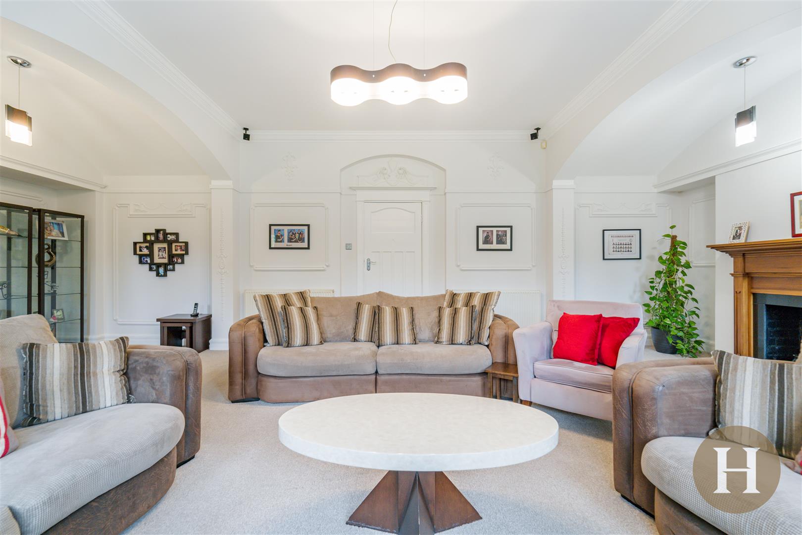 Reception Room - Original dining room now used by vendors as sitting room, featuring double glazed windows, bay and alcove, two radiators, power points, carpeted, recessed ceiling down lighters, archway to rear access.