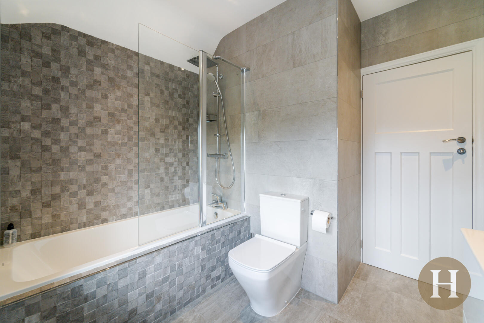 Family Bathroom - Benefitting from double glazed window to front elevation, mains shower over bath with fully tiled walls. Low level flush WC, hand wash basin, towel radiator and fitted cupboard.