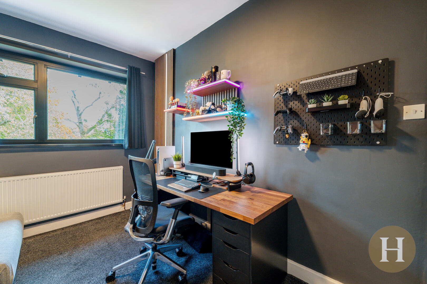 Bedroom Three - Double bedroom with carpeted flooring, window to rear elevation, gas central heating radiator and fitted wardrobes.