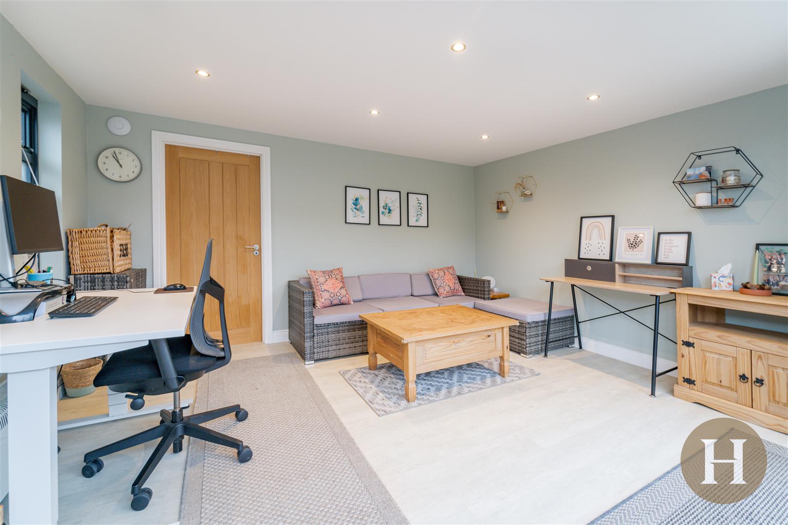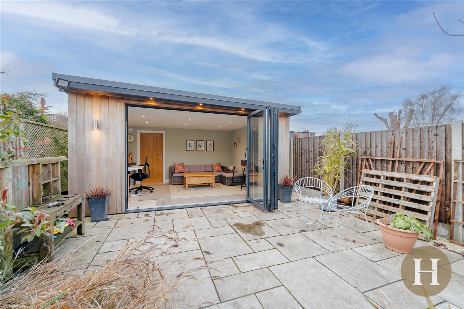 Garden Room - At the rear of the garden is a substantial and multi functional garden room. Boasting bi-fold doors, full electrics, ceiling light points. Making for a fantastic working from home space, playroom or gym. Further benefitting from rear shed area, ideal for storage.
