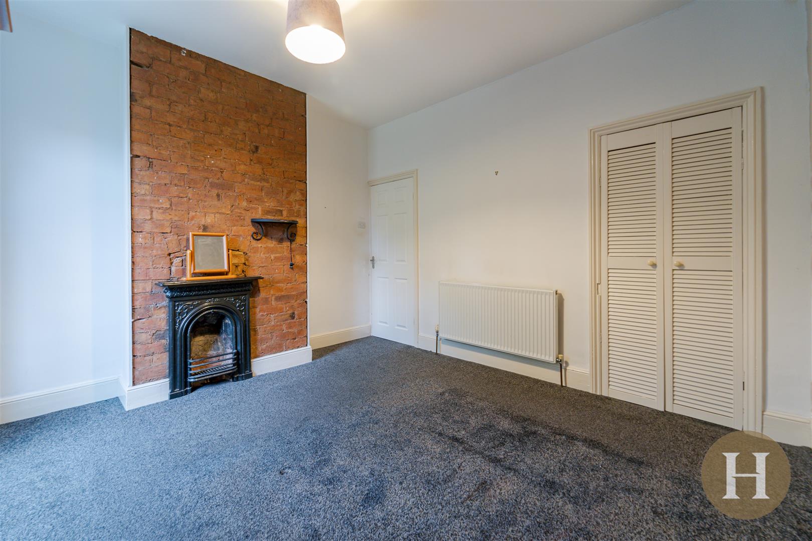 Bedroom Two - Feature fireplace set on bricked chimney breast, double glazed window to the rear elevation and central heating radiator. Ceiling light point and carpeted flooring.