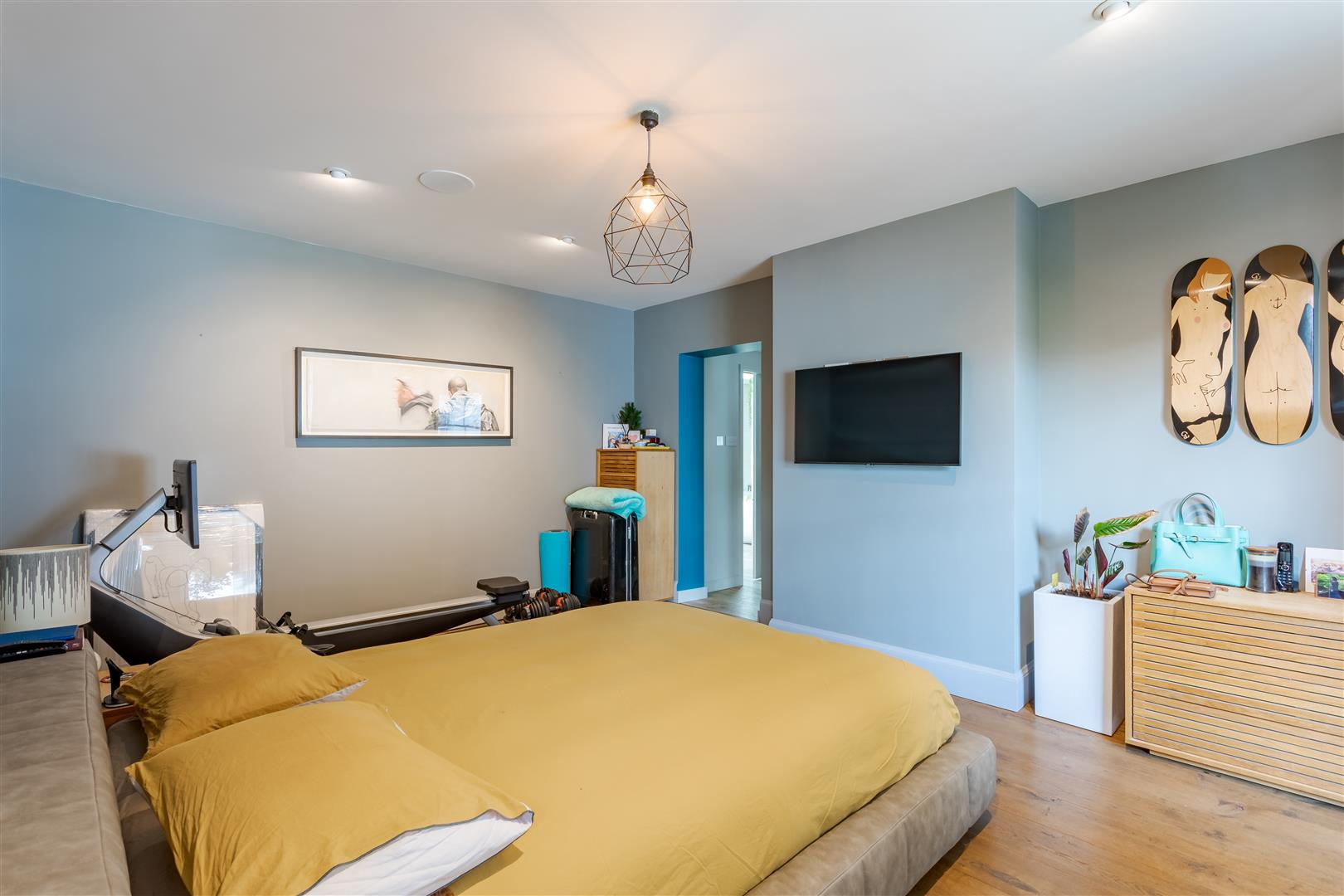 Master Bedroom - Large, modern and light master bedroom compromises of a generous dressing room space and sizable en-suite. En-suite benefits from skylights which electronically open and jacuzzi bath. Throughout the master bedroom space there are apple play speakers and LED lighting
