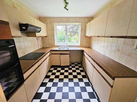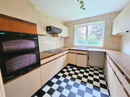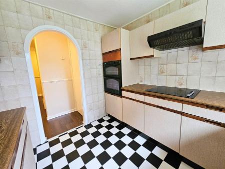 Fitted with a range of base and wall mounted units, roll edge work surfaces, inset stainless steel single drainer sink unit, splashback tiling to the main walls, plumbing for a washing machine, integrated electric hob, oven and extractor hood, ceiling light point and double glazed window.