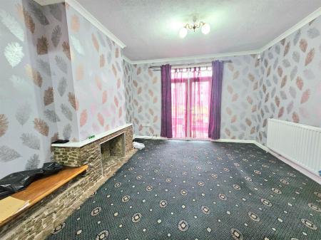 Front aspect double glazed bay window, two radiators and sliding doors to hallway, fire surround, rear aspect double glazed doors to garden and door to kitchen.