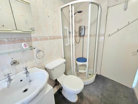 Having rear aspect double glazed window, panel bath walk in shower cubicle, wash hand basin, low level WC and radiator.