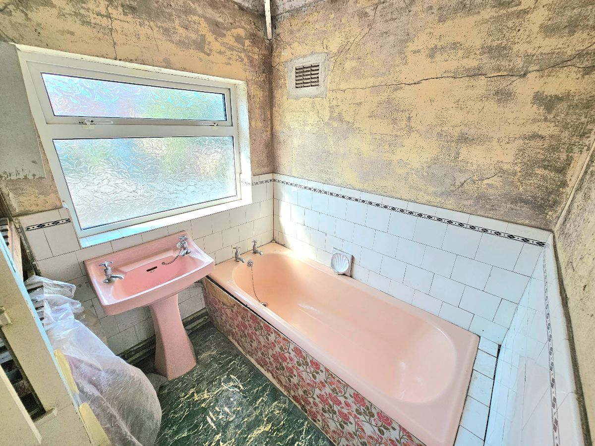 Panel bath, wash hand basin and low level wc, rear aspect window.