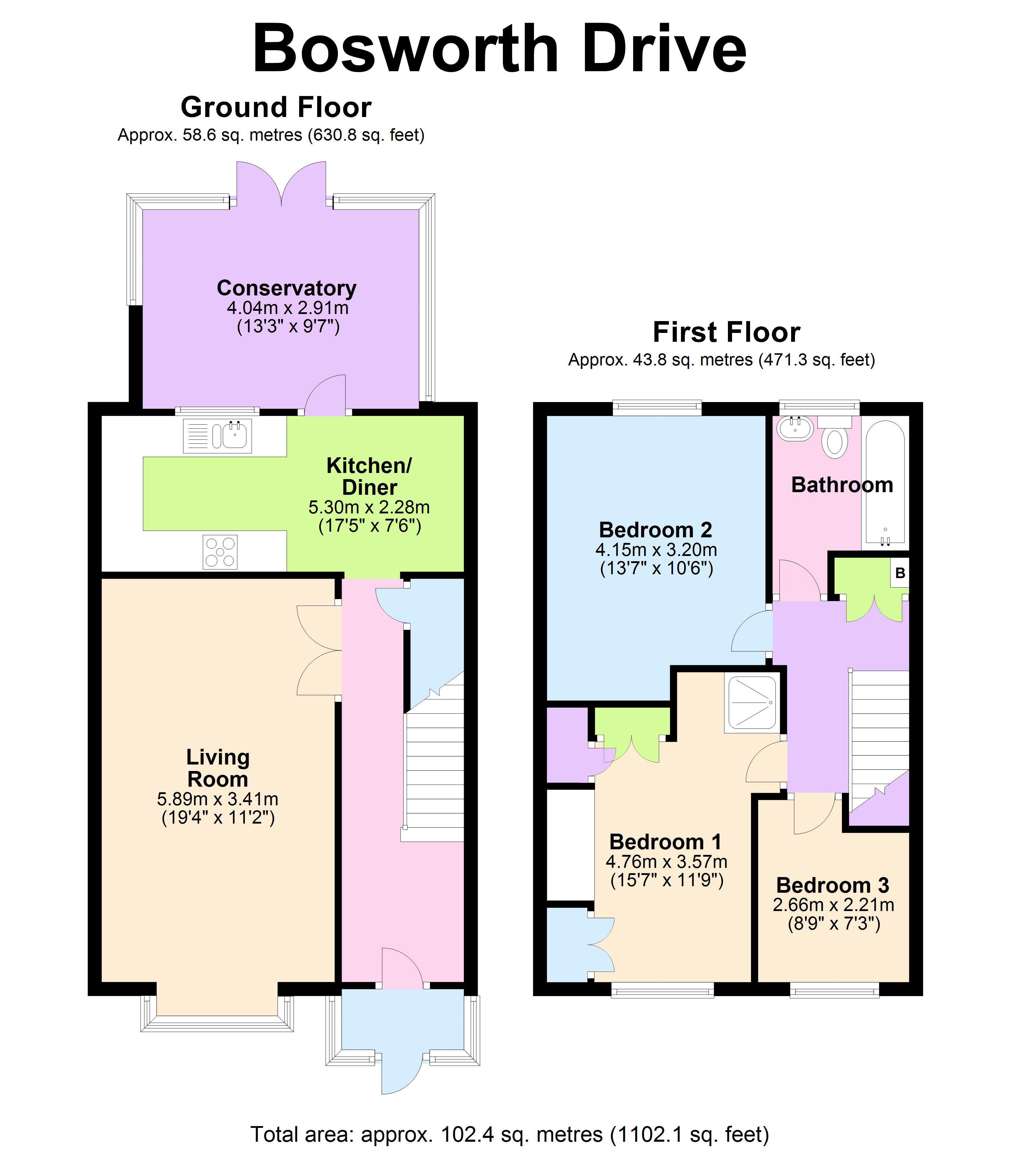 BOSWORTH DRIVE IS A WELL PRESENTED AND WELL LOOKED AFTER END TERRACED HOME! The property is a Standard Build Construction and benefits from Three Bedrooms, Shower Room to the Master and a modern Family Bathroom to the first floor. A Lounge, Kitchen Diner and Conservatory to the ground floor.