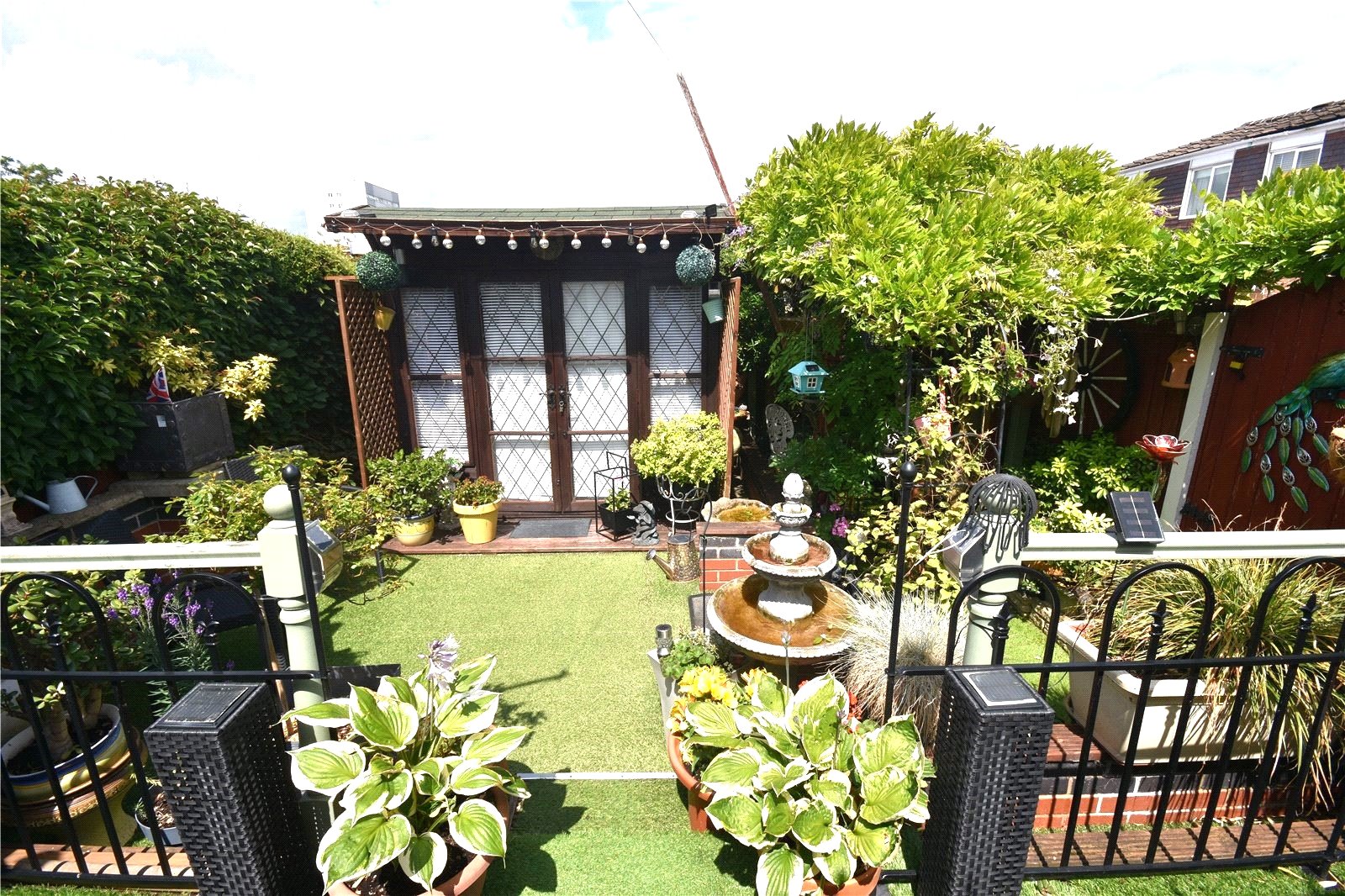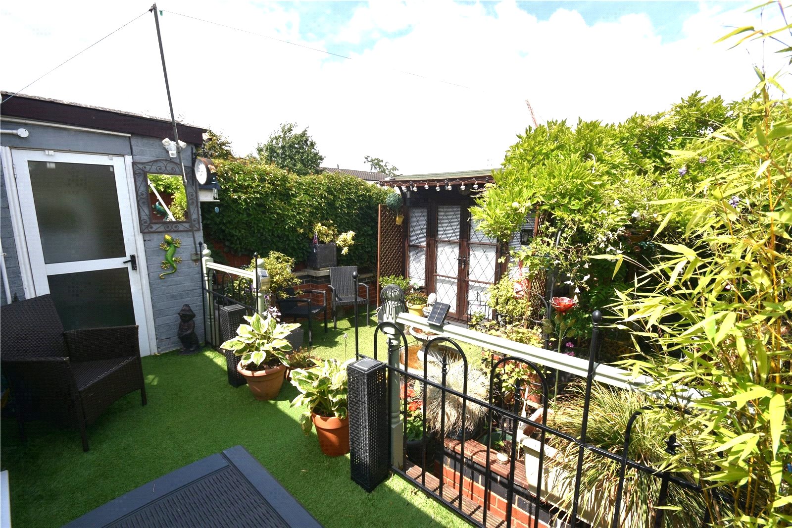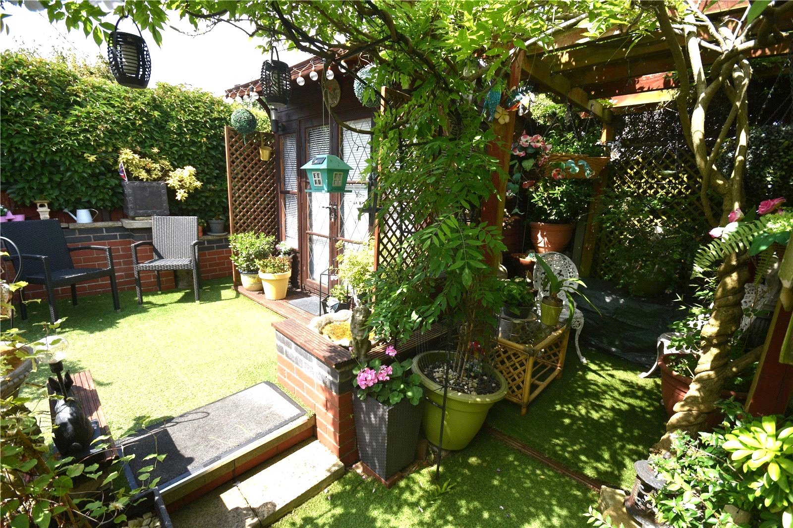 Garden Beautiful, private rear garden with astro turf lawn, relaxing seating area, access to the summer house, gated rear aceess and fence and hedge borders