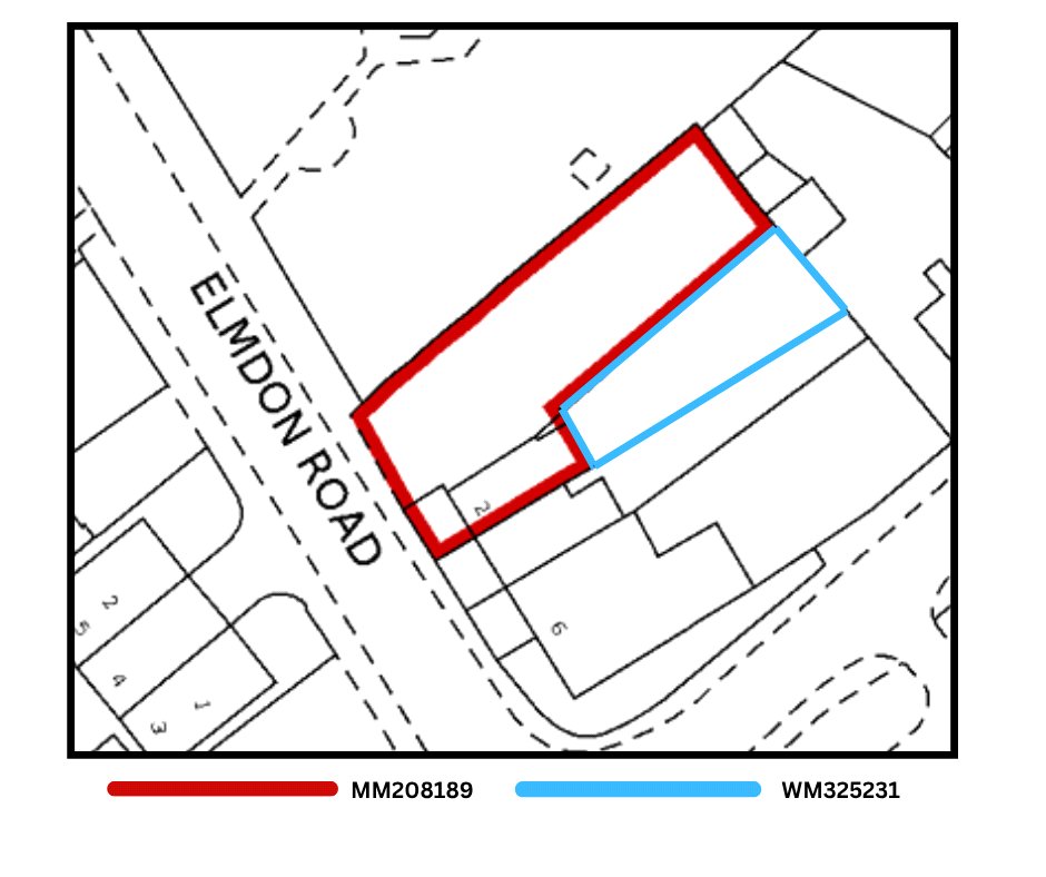 The plot of land, positioned directly adjacent to No. 2 Elmdon Road, currently provides off-road parking and includes a brick outbuilding. With an approximate width of 8 metres, the land offers excellent potential for development or extension, subject to the necessary planning consents. There are no previous planning applications recorded for the site. Its location, adjoining the memorial gardens in the heart of Marston Green, makes it both convenient and desirable.
