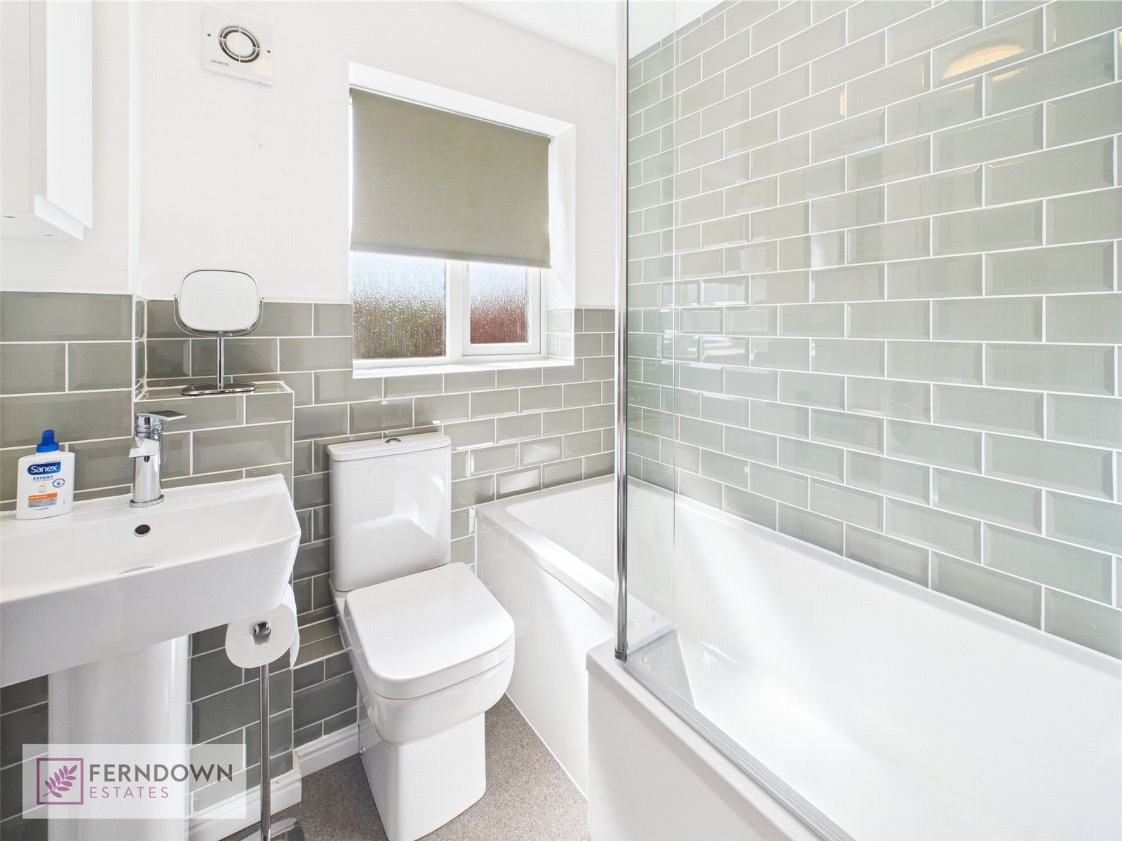 To include a panelled bath with shower over, low level wc and a pedestal wash hand basin