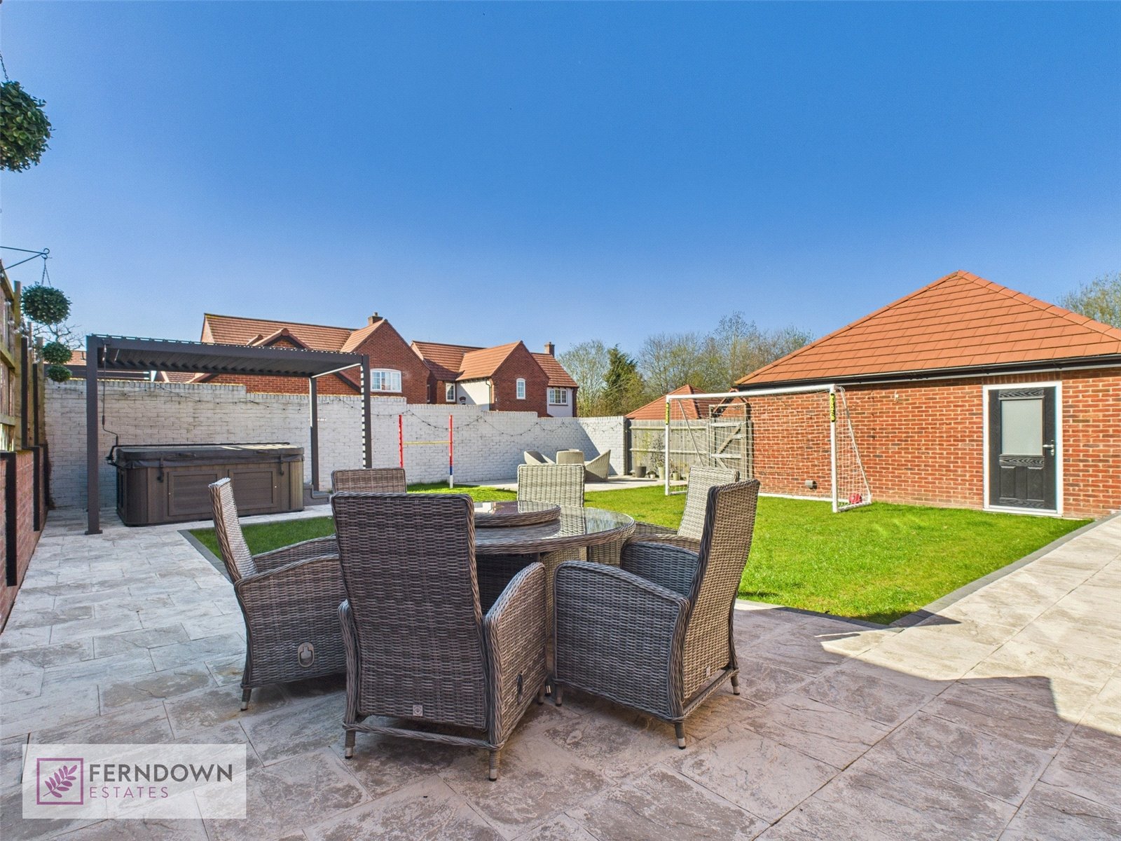 Upstairs, five well-proportioned bedrooms provide ample space, with two featuring en-suite shower rooms. A contemporary family bathroom serves the remaining bedrooms.
