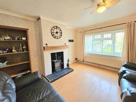 Front aspect double glazed window, radiator and feature fire surround with log burner and laminate wood flooring.