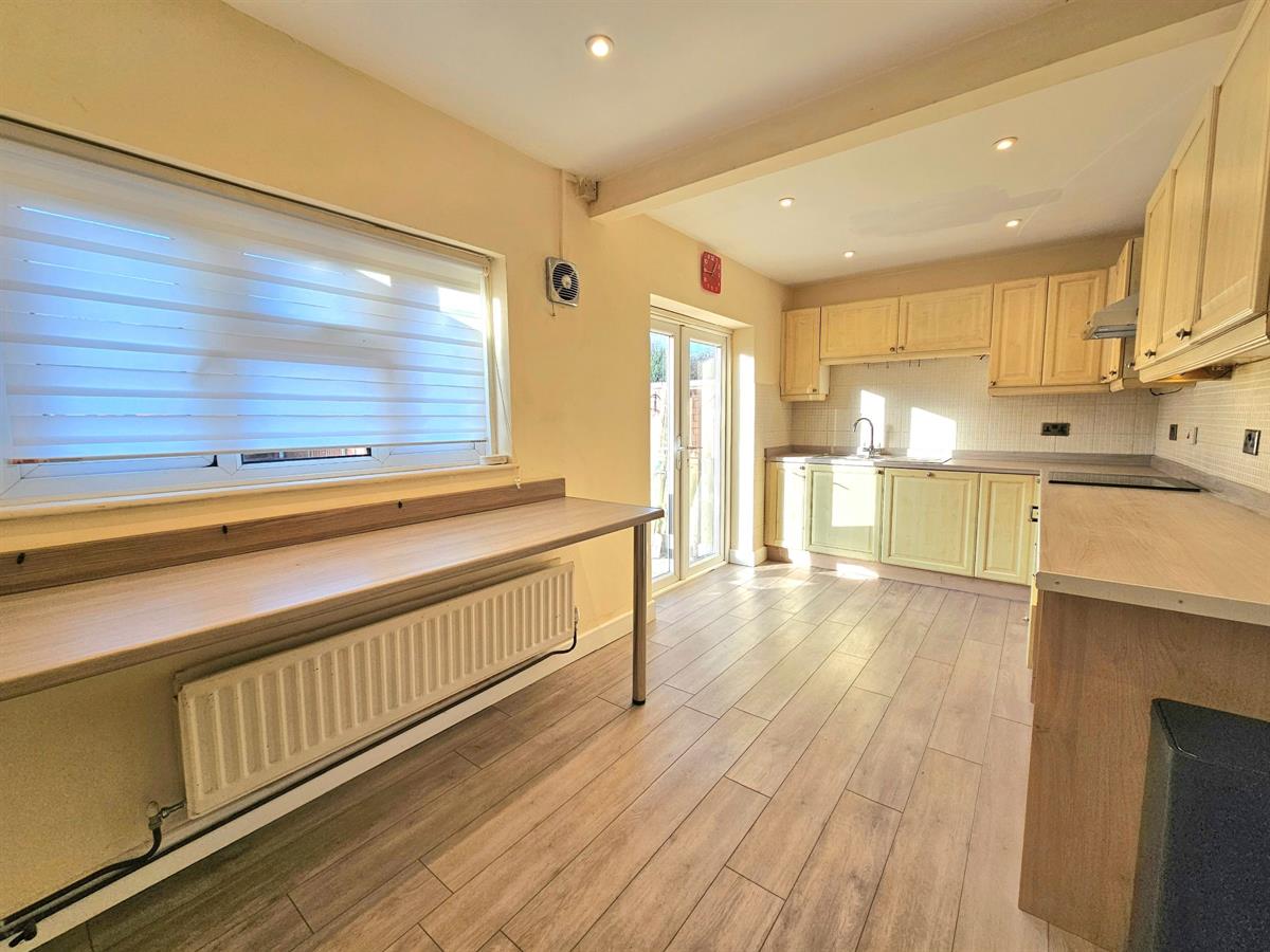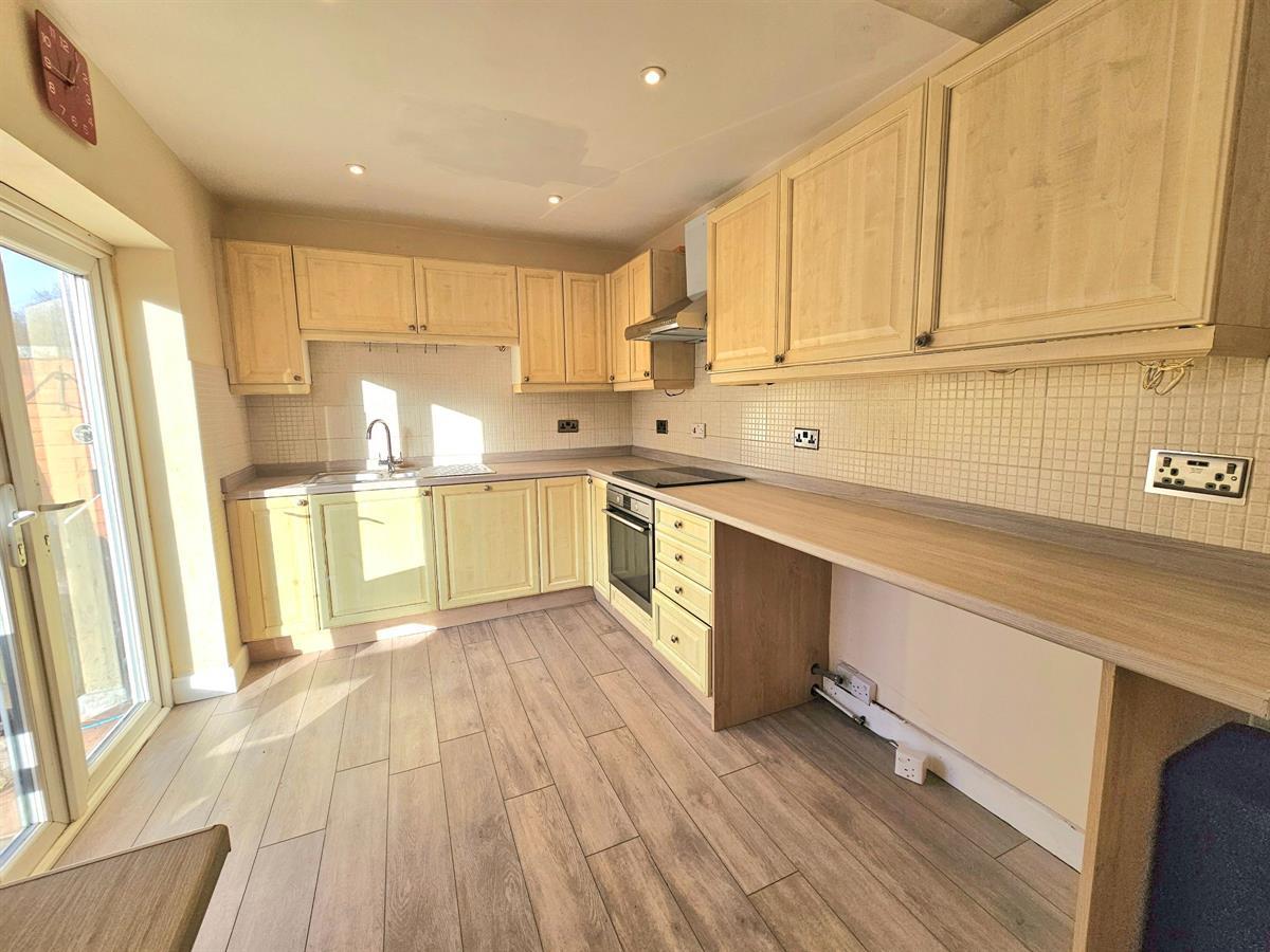 Having rear aspect double glazed window and door to rear garden, matching range of wall and base units with working surfaces, inset sink & drainer, electric hob and oven, space and plumbing for washing machine and space for fridge freezer, door to side lobby area.