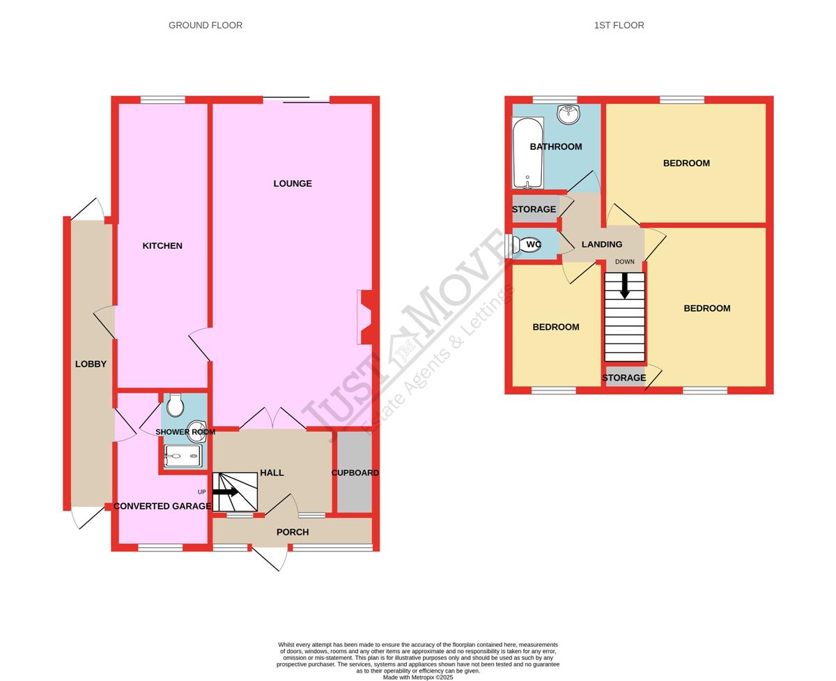 Landing area having loft hatch access, storage closet housing boiler, door to bedrooms, bathroom and Wc.