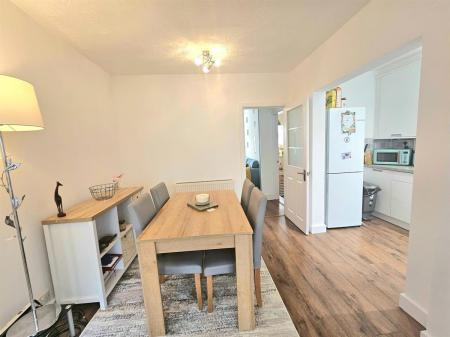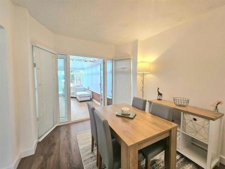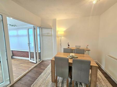 Having laminate wood flooring, radiator and opening into kitchen with doors off to the conservatory extension.