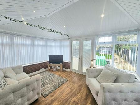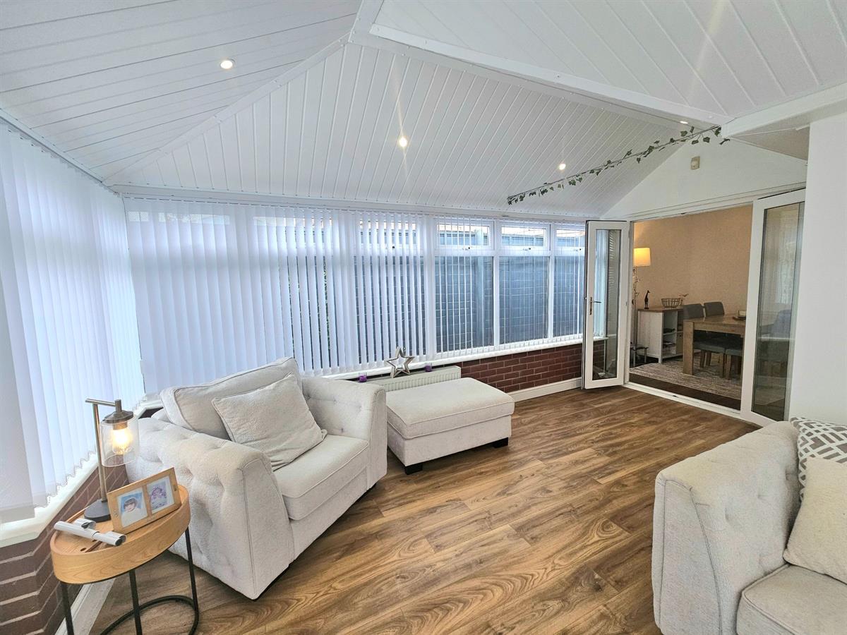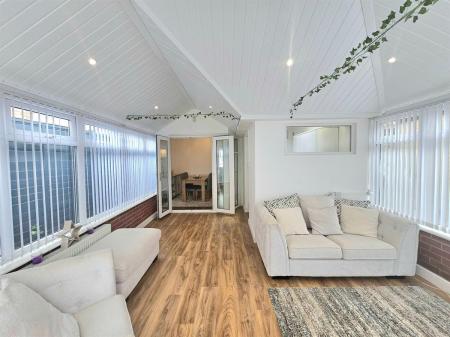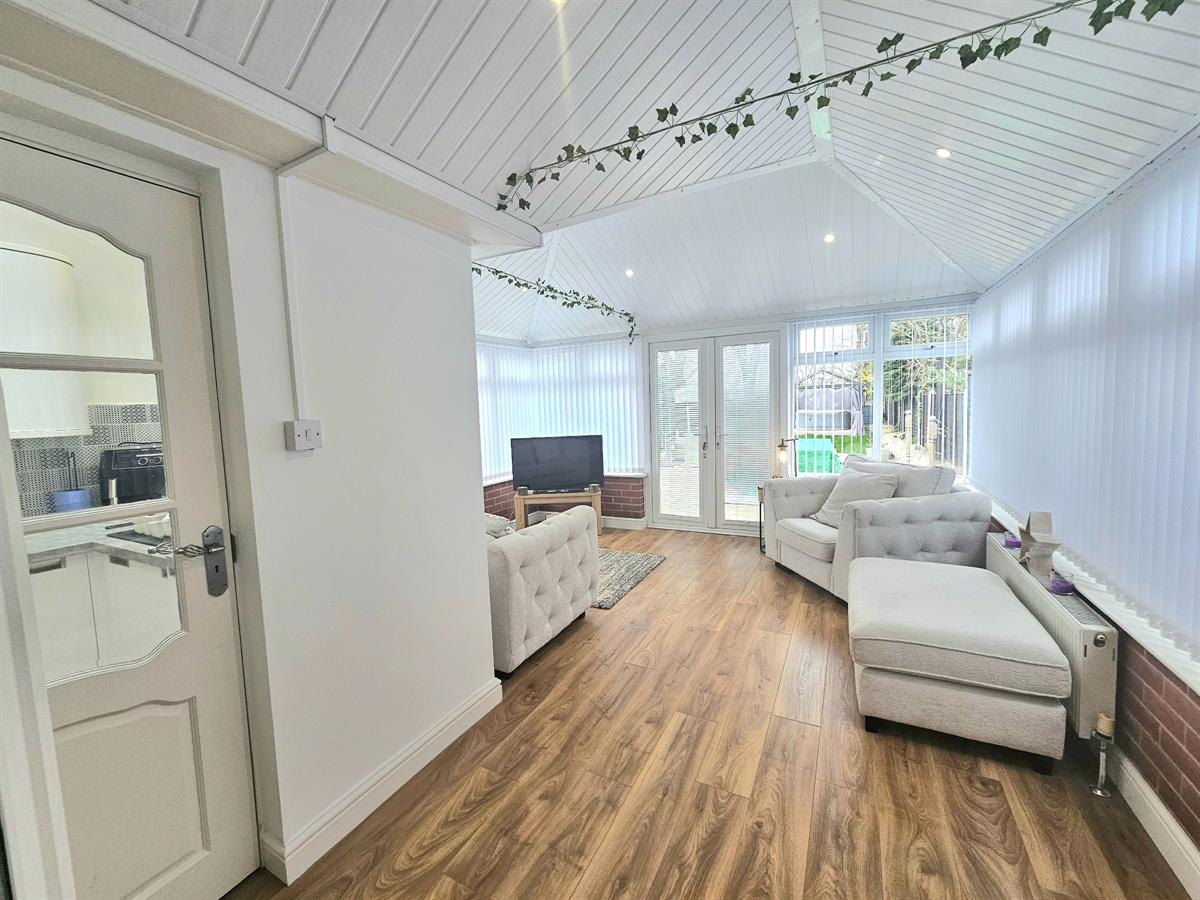 Large spacious family room with insulated roof, laminate wood flooring, radiator and double glazed dual aspect windows and doors off to the the rear garden.