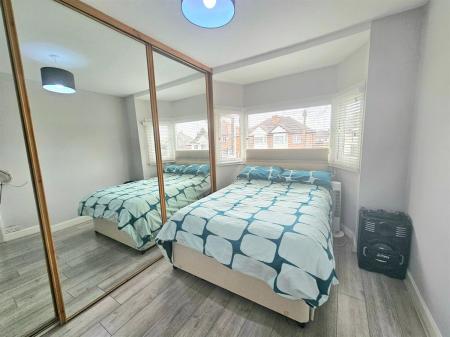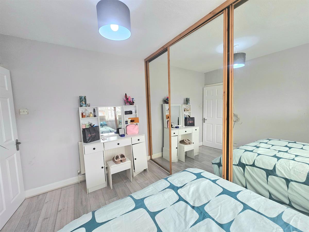 Front aspect double glazed bay window, radiator, built in wardrobes and laminate wood flooring.