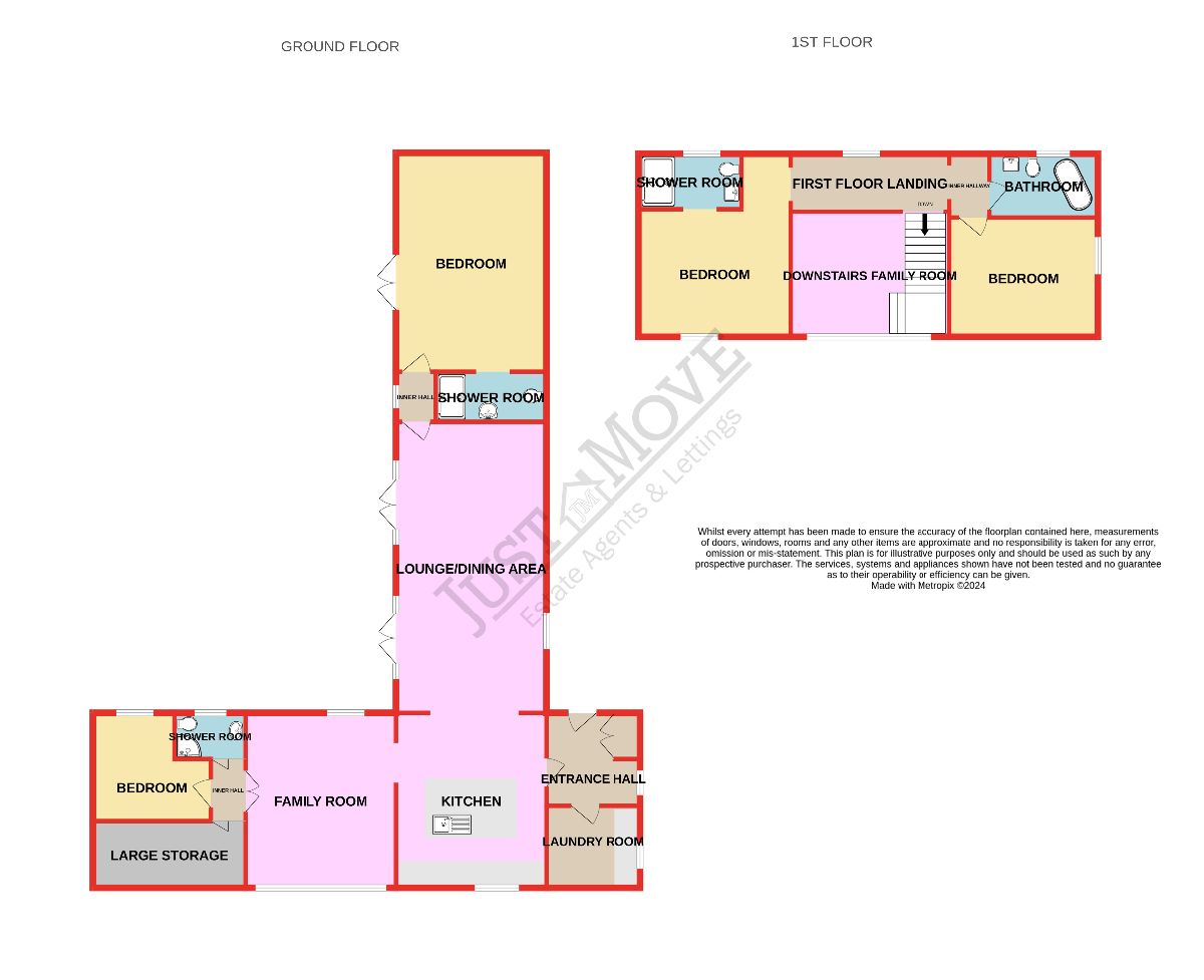The property boasts four generously sized double bedrooms, each with its own en-suite shower or bathroom, providing comfort and privacy for all residents. Two of these bedrooms are conveniently located on the ground floor, while the remaining two are situated on the first floor.